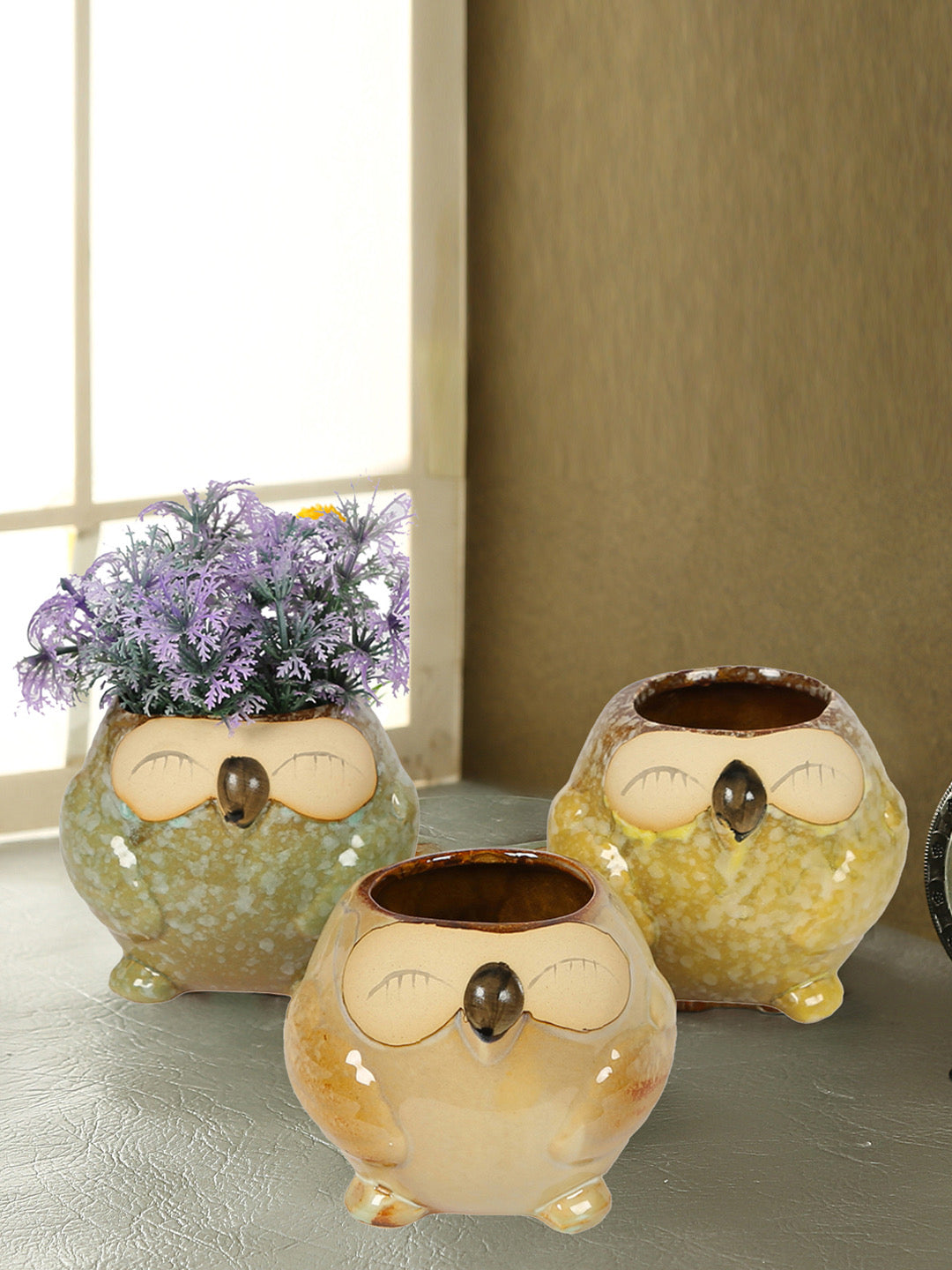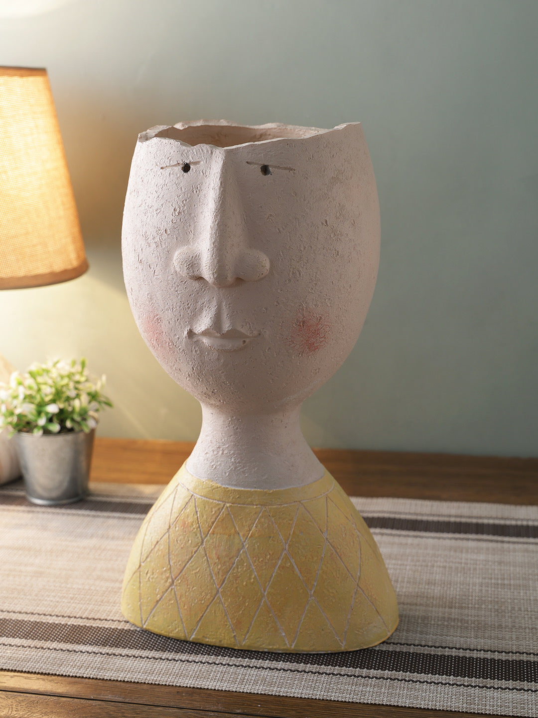 2 Pieces White & Beige Textured Ceramic Flower Vases