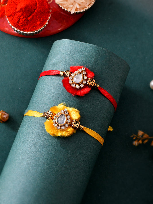 Aapno Rajasthan Yellow Beads & AD Embellished Floral Motif Rakhi