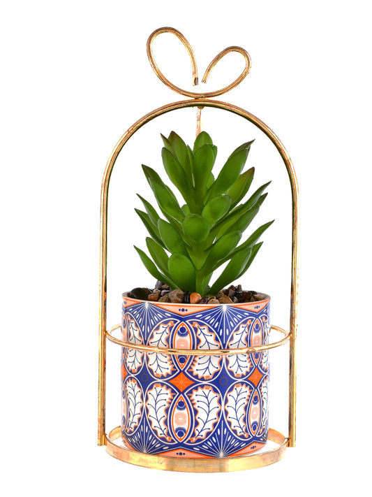 Artificial Plant with Ceramic Planter in a Golden Stand