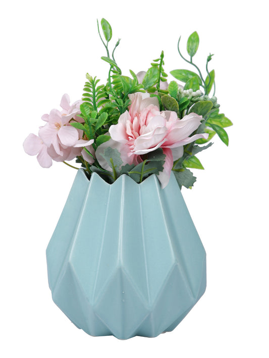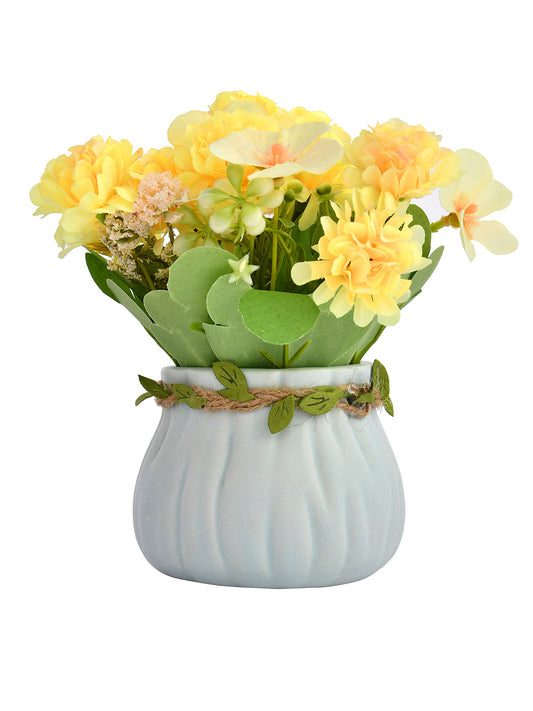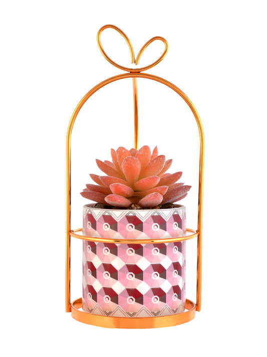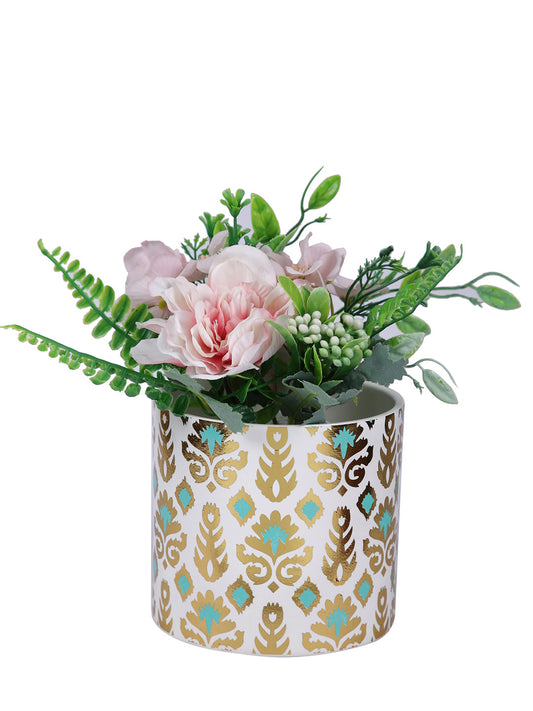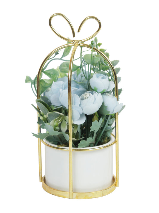 Artificial Plant with Ceramic Planter in a Golden Basket