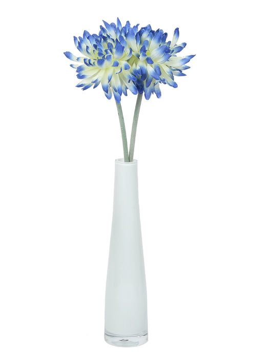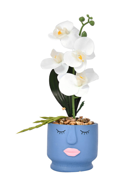 Blue and Green Artificial Plant with Flowers and Gold Plated Metel Stand