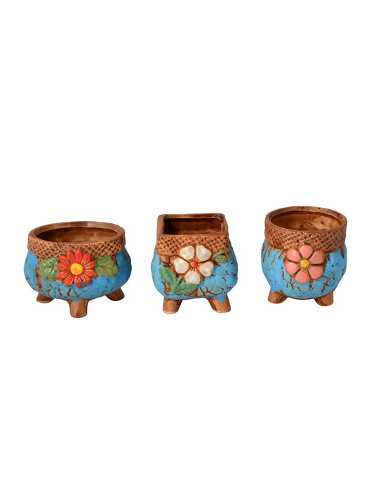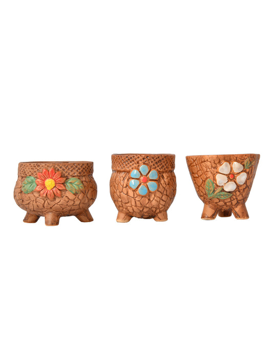 Set of 3 Nature's Embrace Painted Ceramic Planters