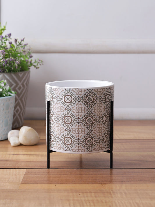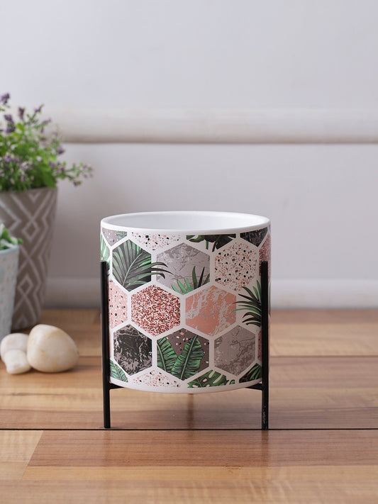 Set Of 3 Enamel Painted Flower Design Ceramic Planters