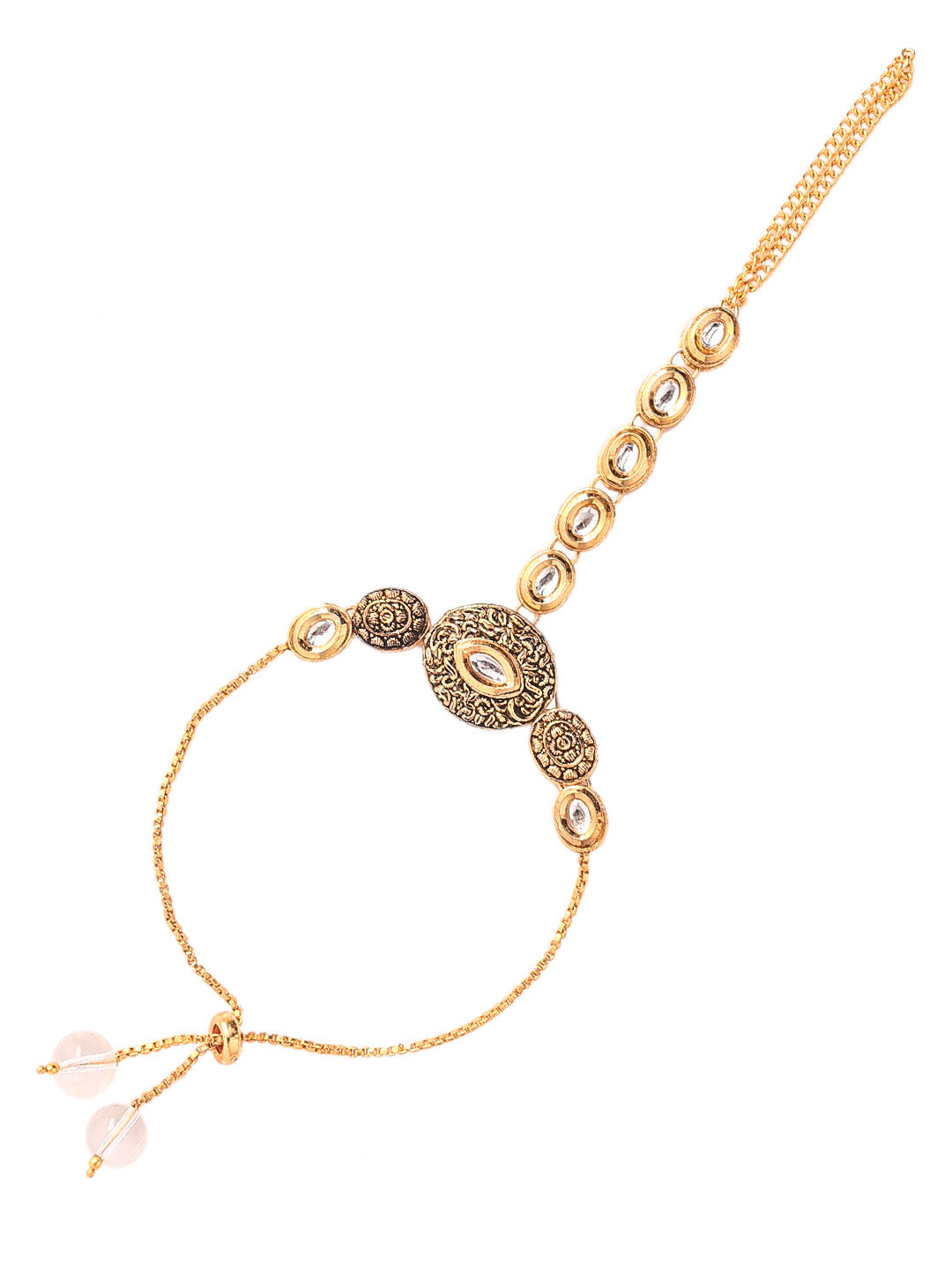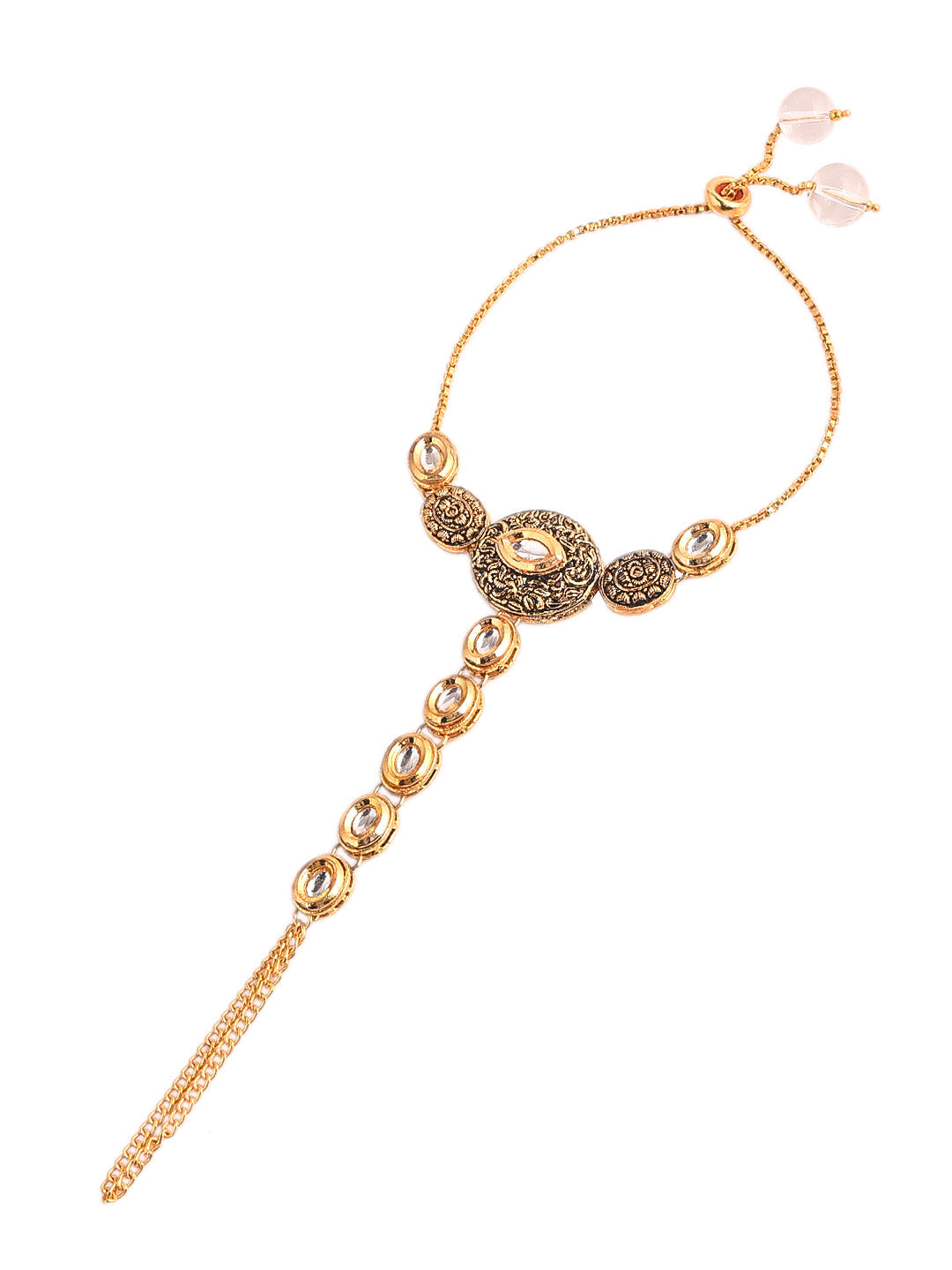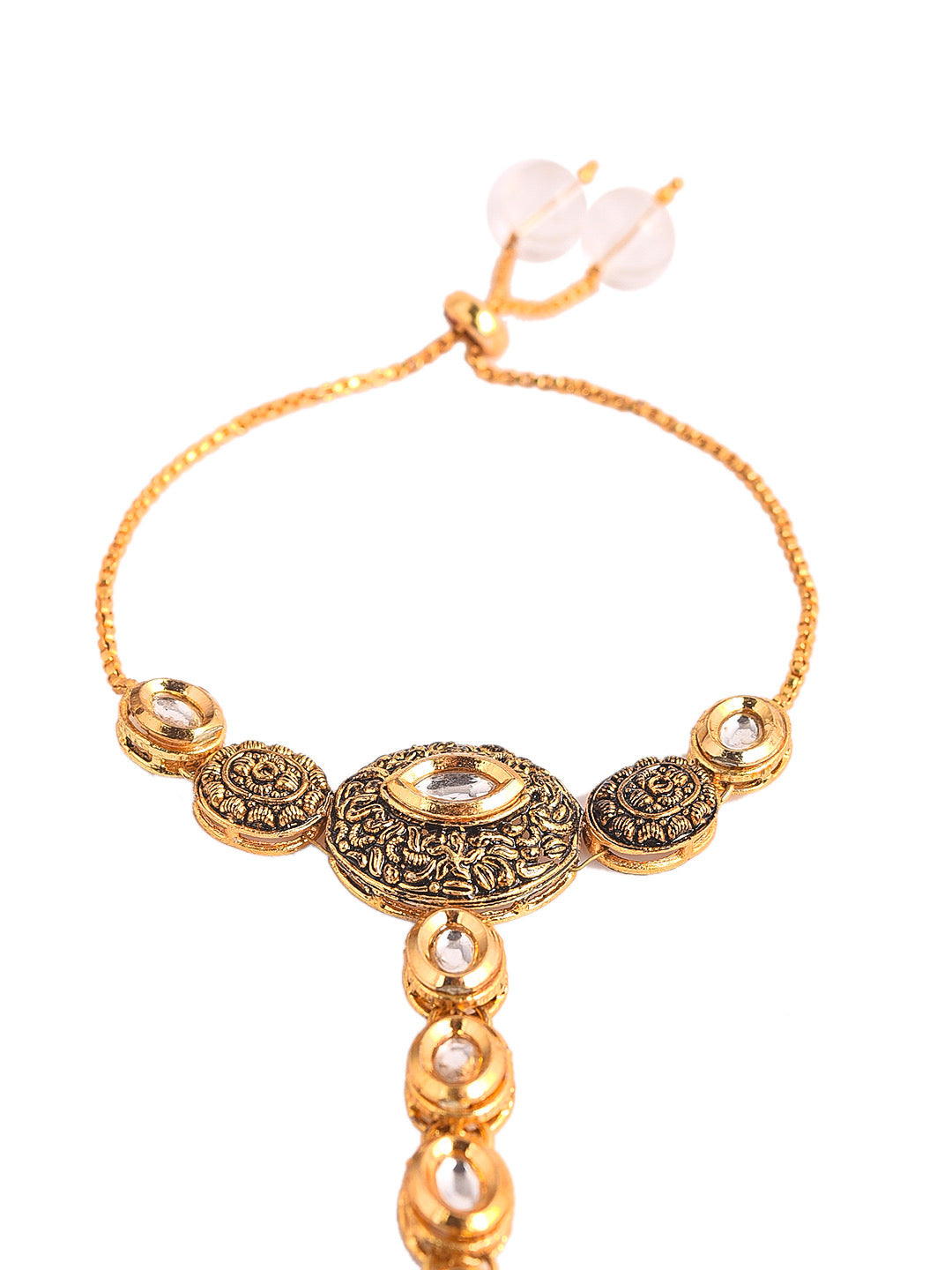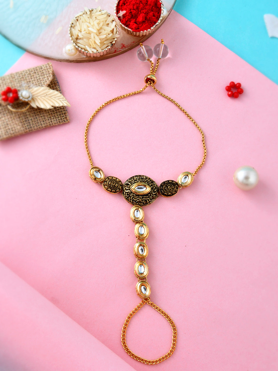 Aapno Rajasthan Antique Finish Golden Bangle style Lumba Rakhi with Kundan Work