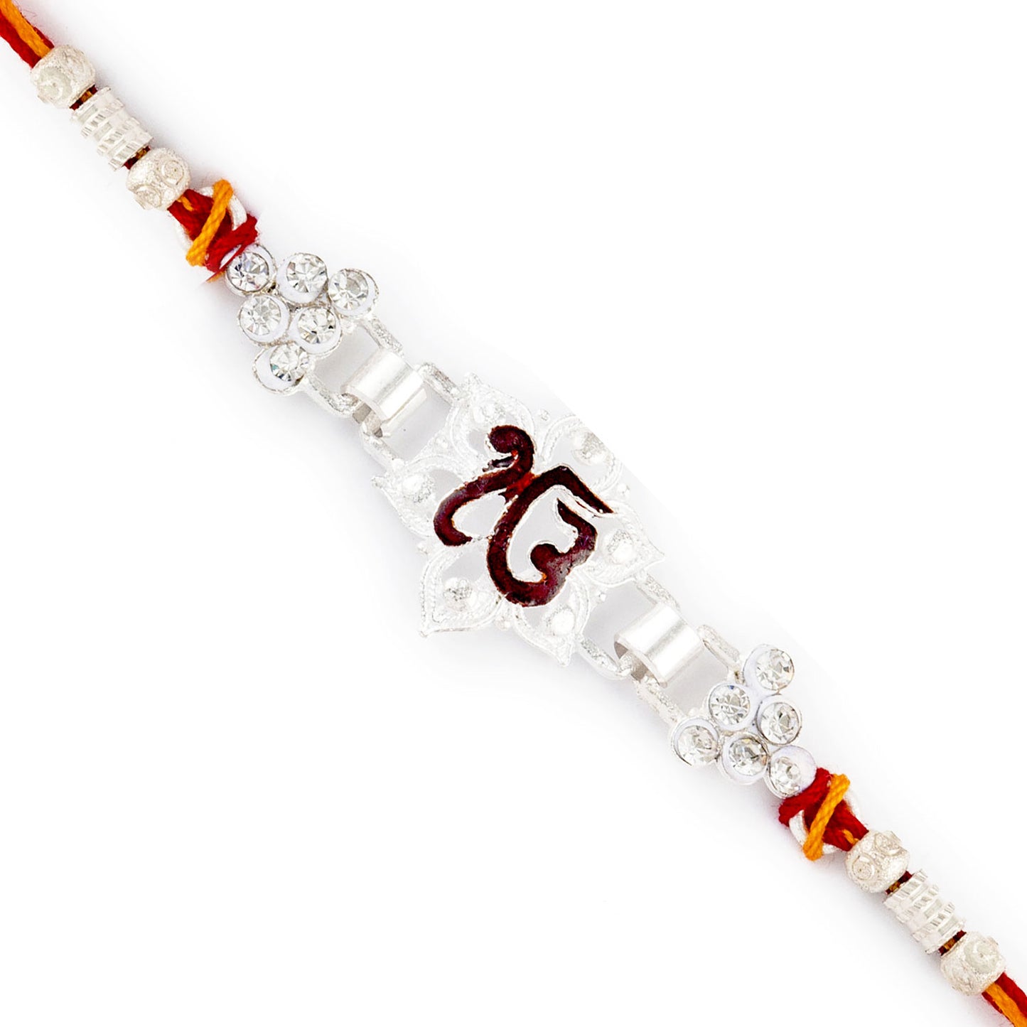 Aapno Rajasthan Beautifufl AD Embellished Silver OM Rakhi