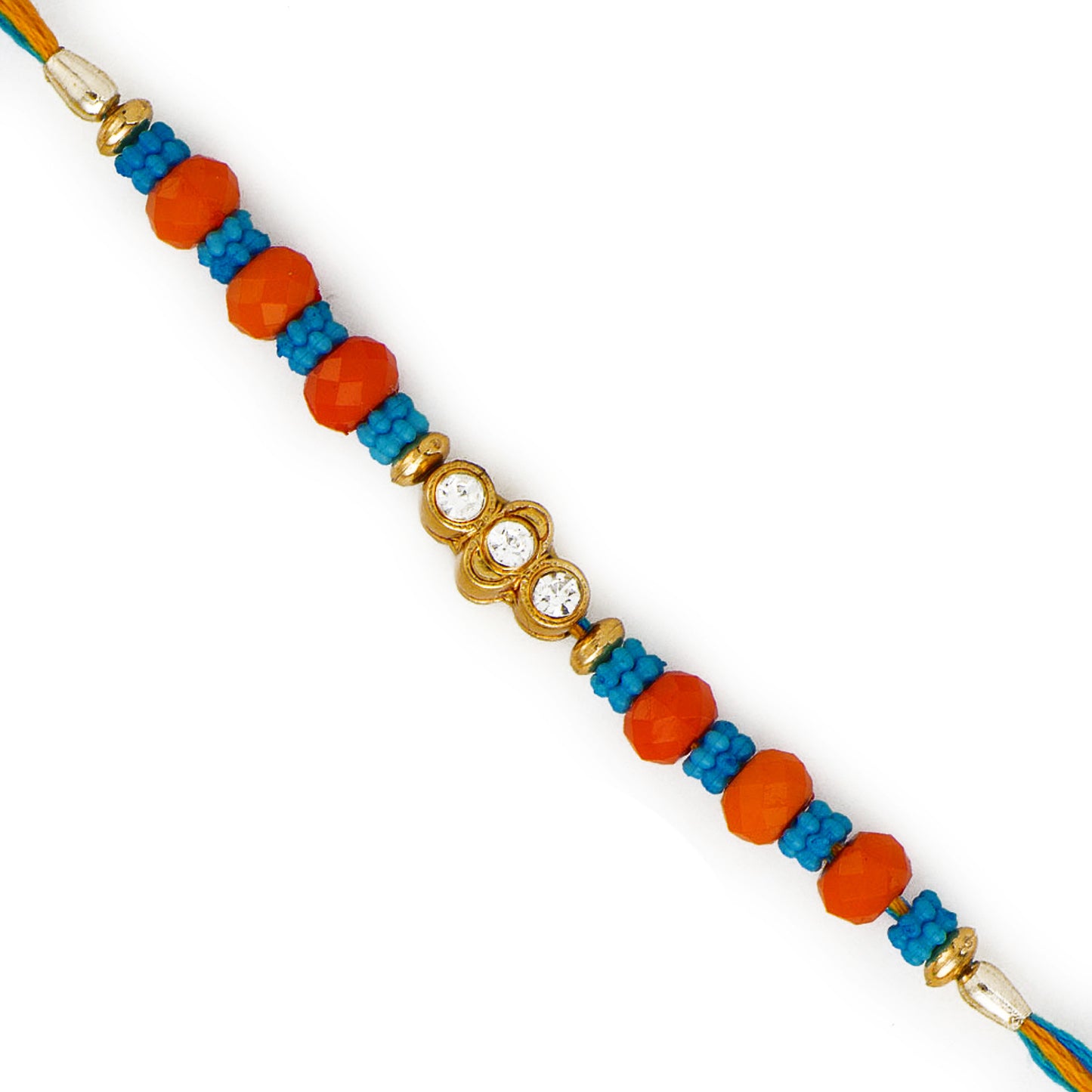 Aapno Rajasthan Blue & Orange Beads AD studded Rakhi