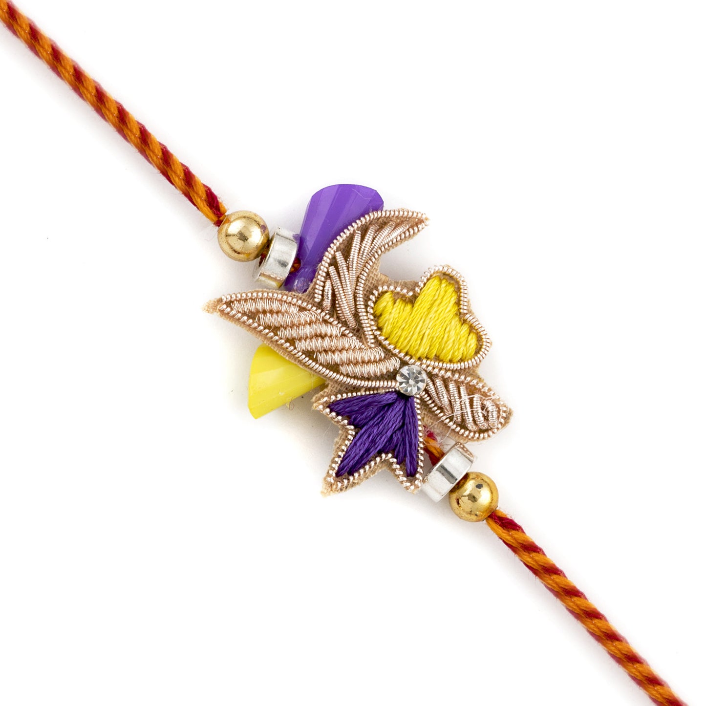 Aapno Rajasthan Charming Yellow and Violet Zardosi Rakhi