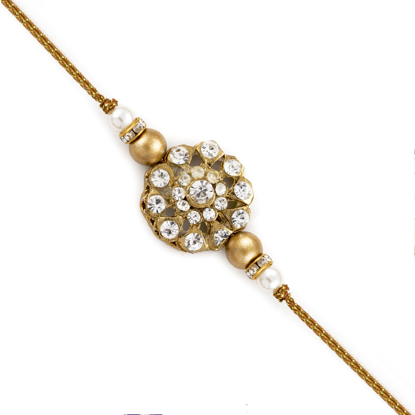 Aapno Rajasthan Floral Design AD Studded Golden Rakhi