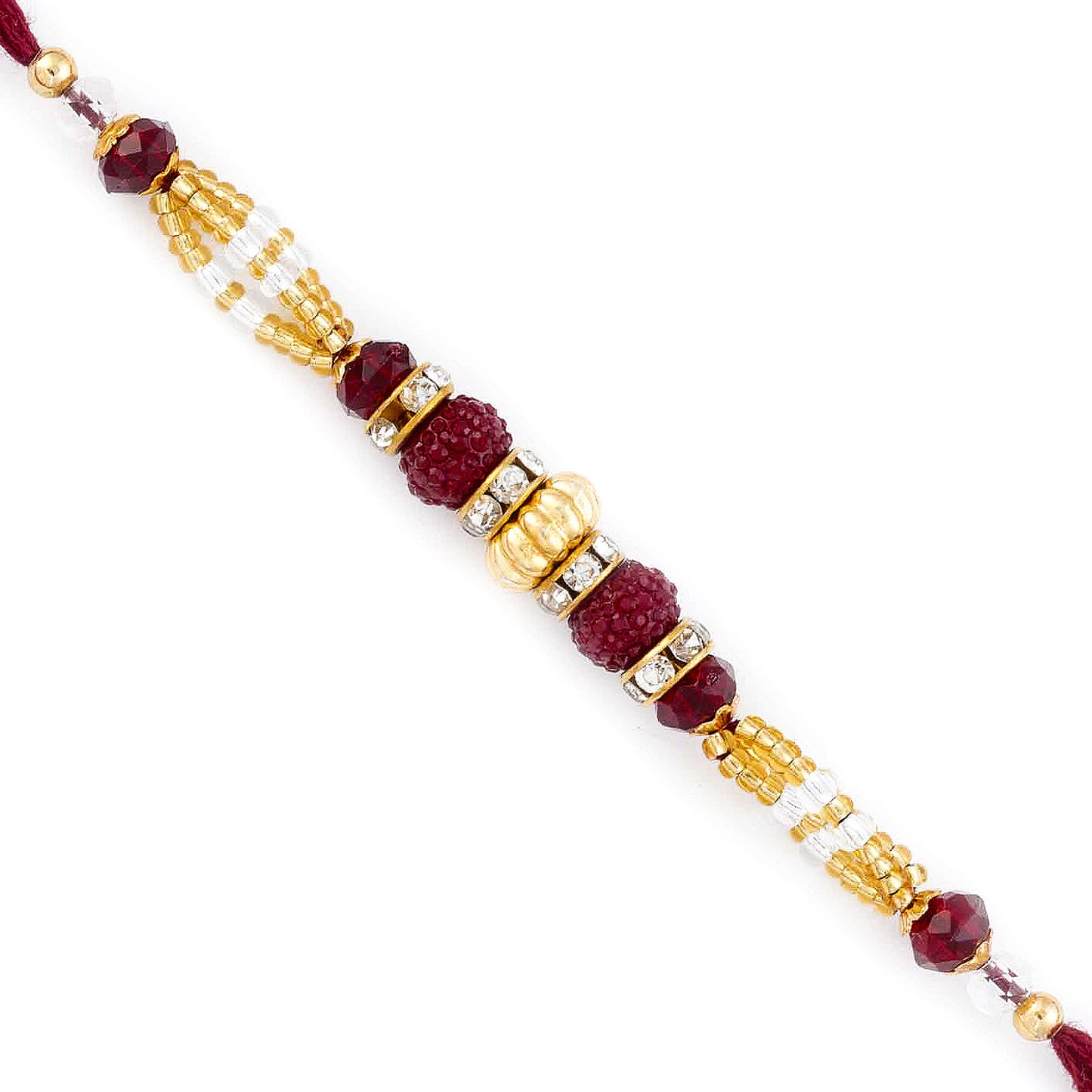 Aapno Rajasthan Golden & Magenta Beads Studded Beautiful Rakhi