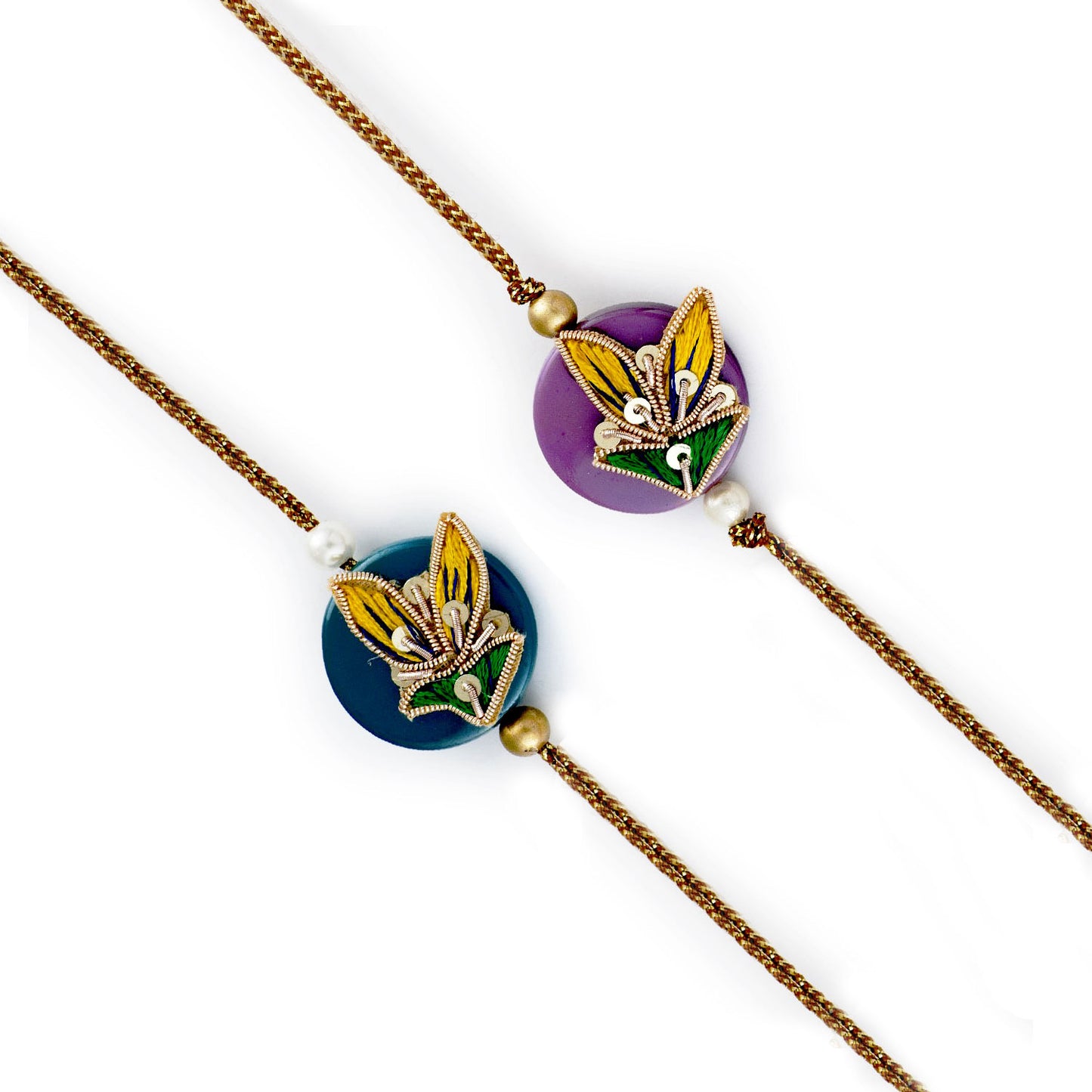 Aapno Rajasthan Set of 2 Yellow & Green Zardosi Rakhi