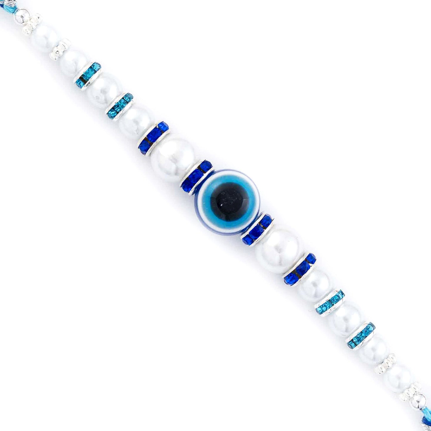 Aapno Rajasthan White Pearl & Evil Eye Studded Rakhi
