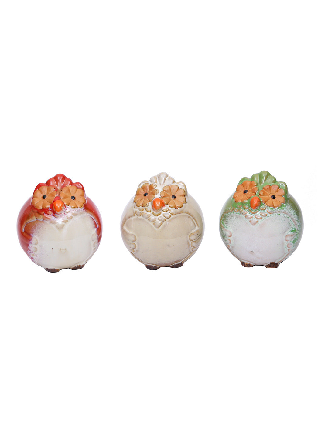 Adorable Flower-Eyed Colourful Ceramic Owl Trio
