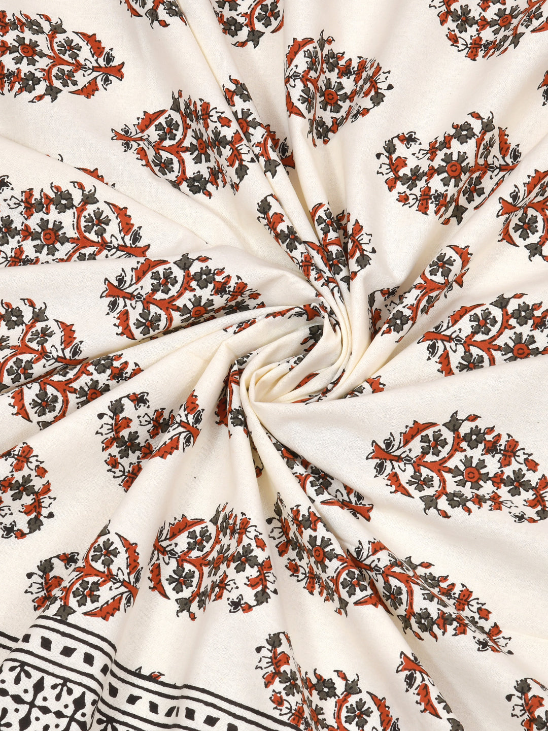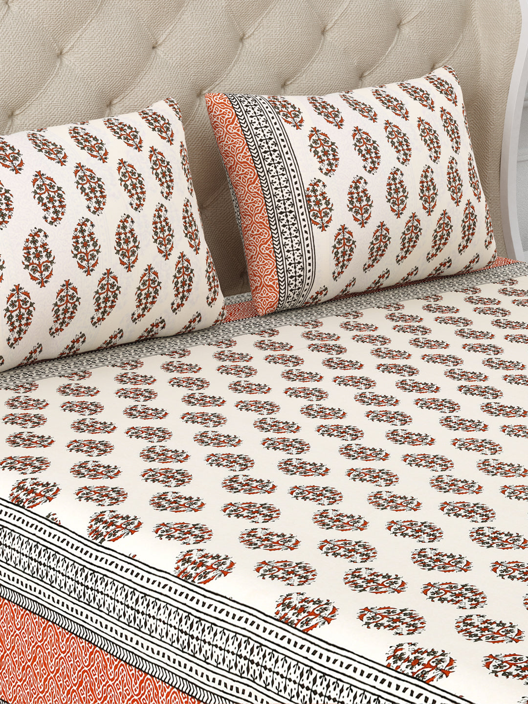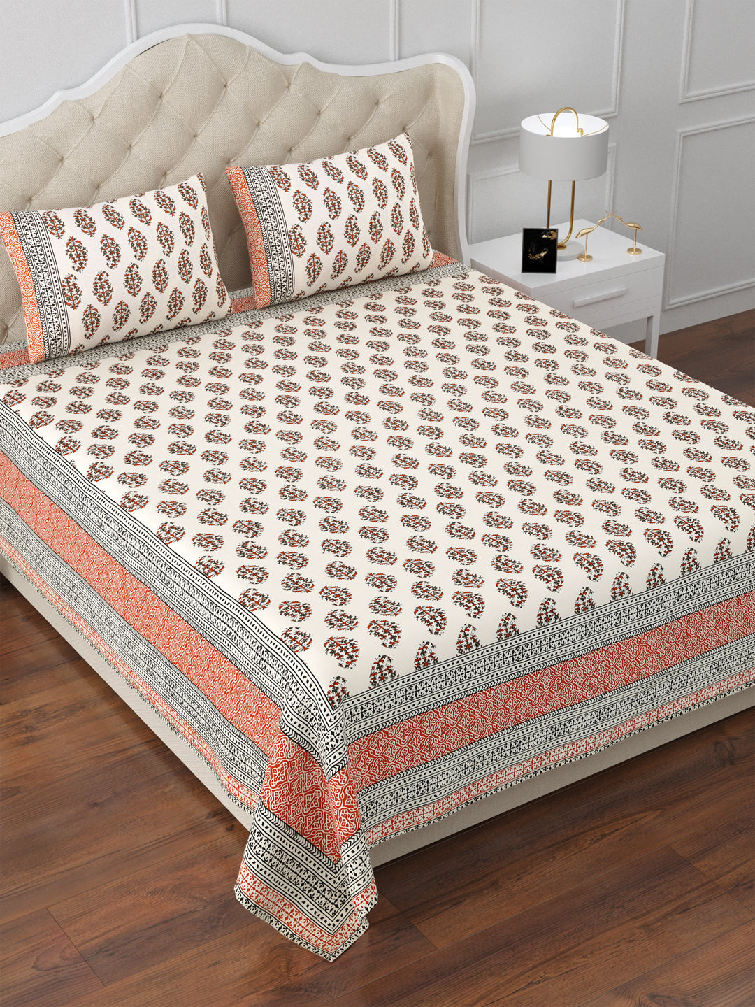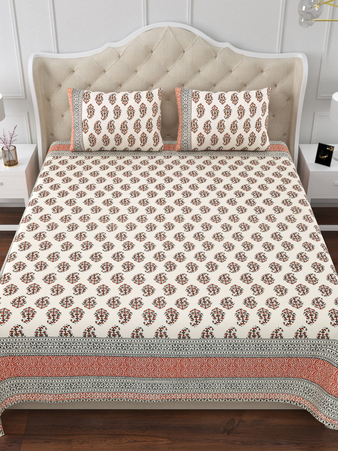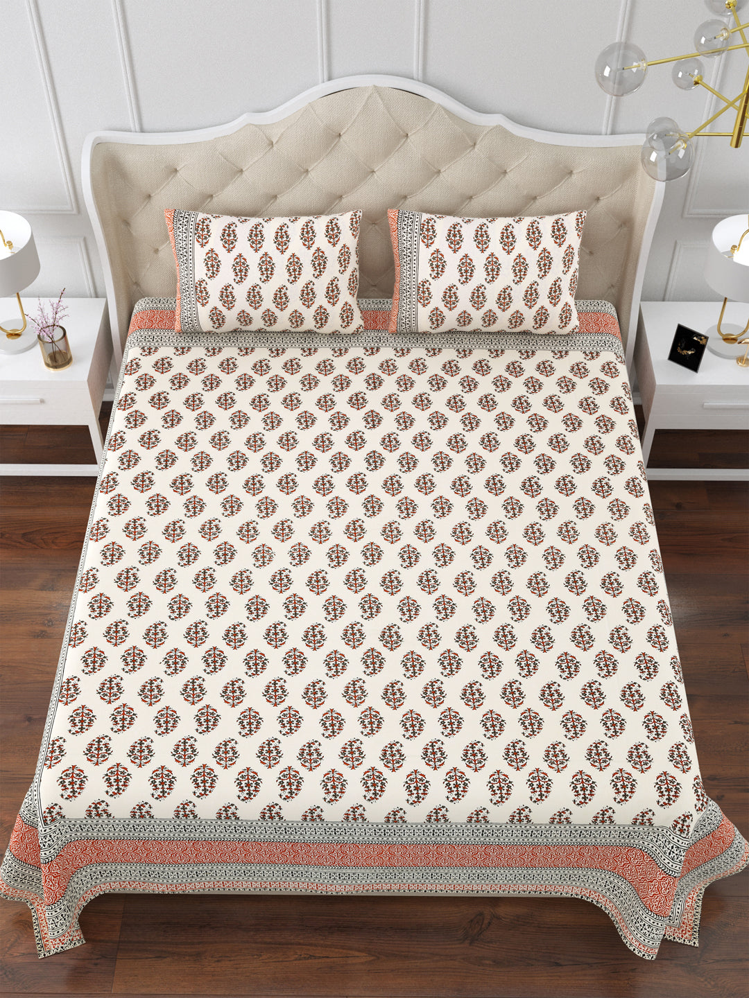 Ajrak Impressions Brown & Grey Cotton Double Bedsheet with 2 Pillow Covers