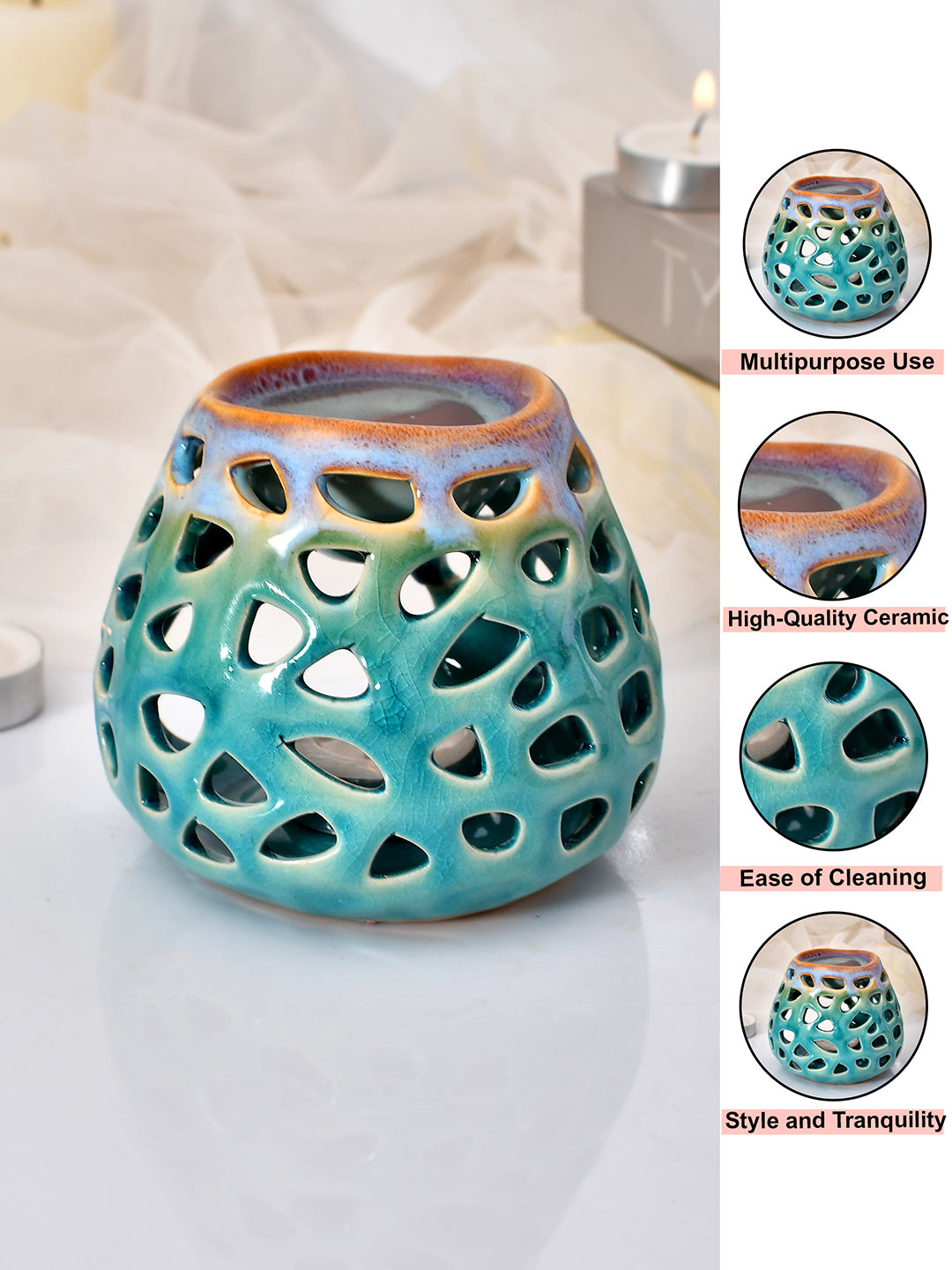 Introducing our Aroma Mist Ceramic Oil Diffusers, where artistry meets aromatherapy. Crafted from high-quality ceramic, these diffusers not only enhance your space's ambiance but also elevate your well-being. You can use it to relax your mind and soothe your anxiety. The ceramic material's elegance ensures longevity and complements any decor. Our innovative design simplifies the aromatherapy process. Just add your favorite aromatic oil to the upper reservoir and place a gentle light source below. As the ceramic gently heats, it releases the oil's soothing aroma, enveloping your space in tranquility. With Aroma Mist Ceramic Oil Diffusers, you can effortlessly create a serene and inviting atmosphere, transforming any room into a haven of relaxation and rejuvenation.