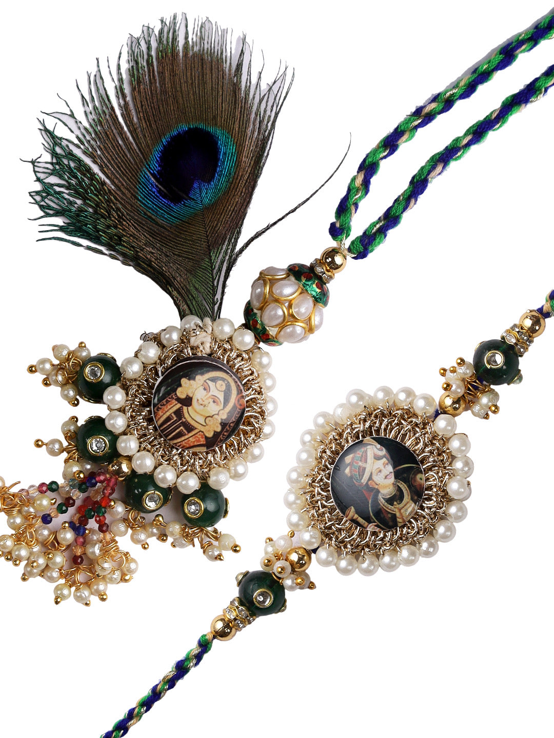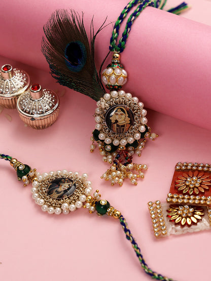 Beaded Rajwada Style Bhaiya Bhabhi Rakhi set