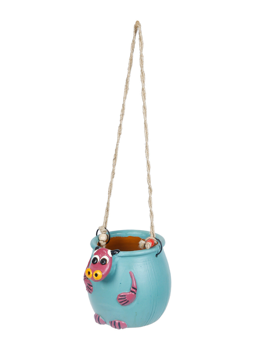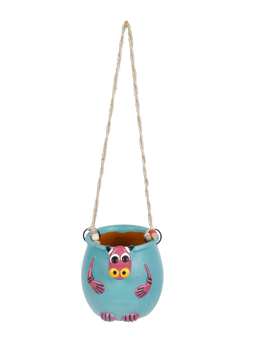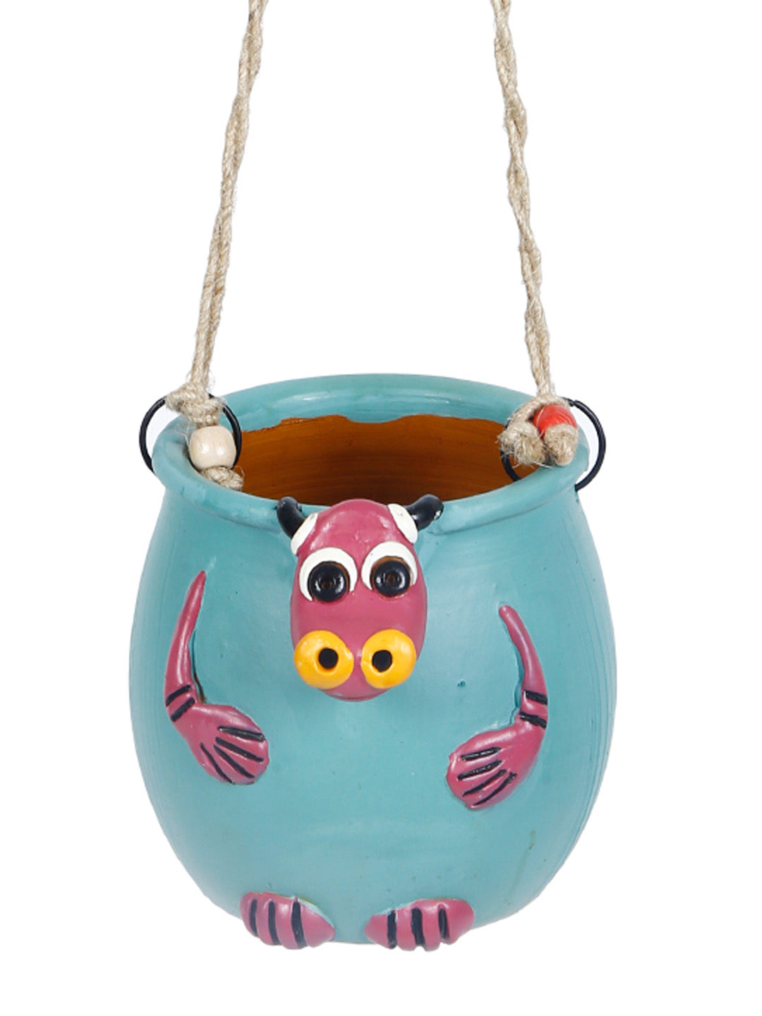 • This blue plant holder has a very cute design and features a bull face on its front with tiny hands and feet that make it even more adorable.