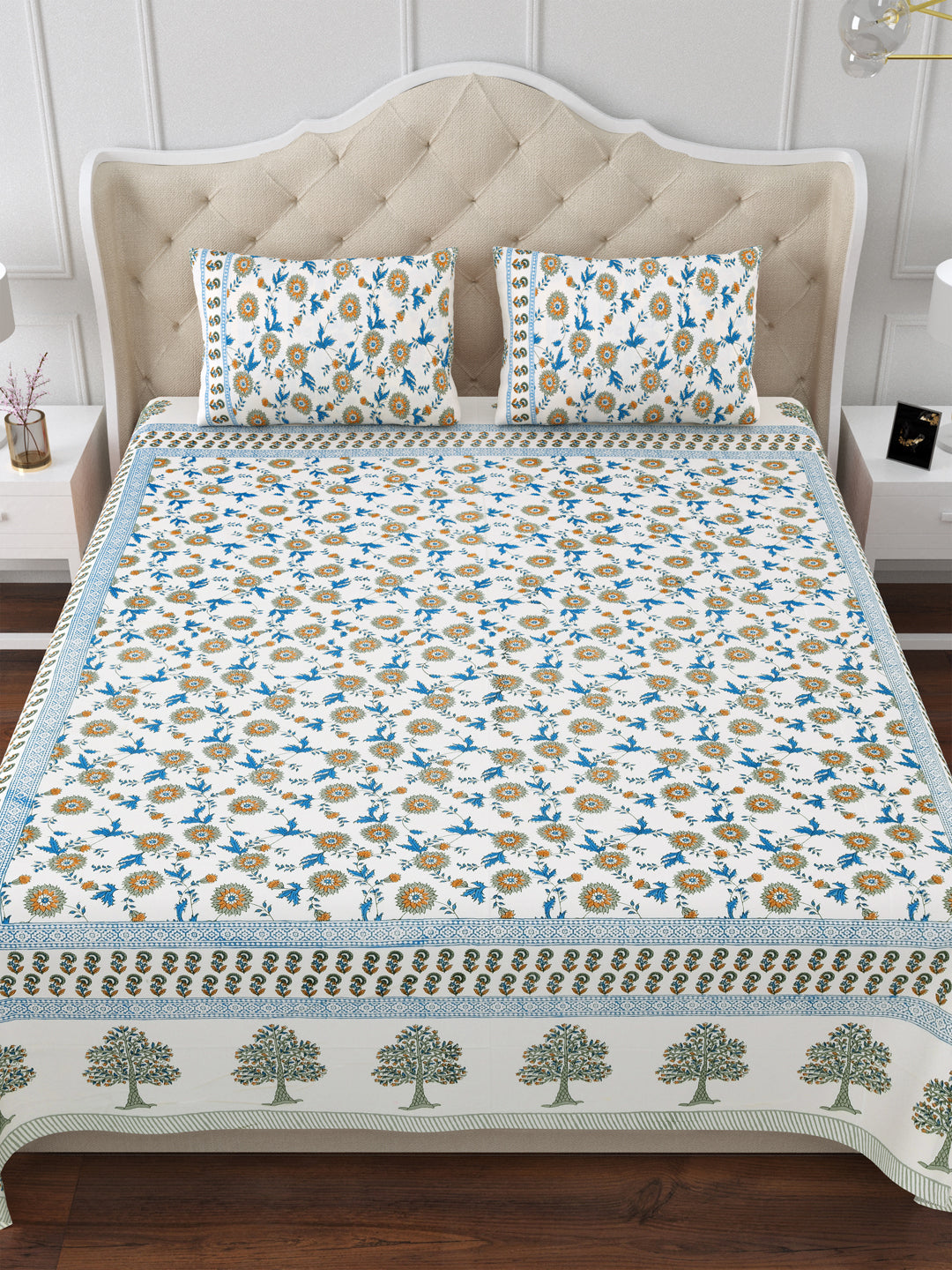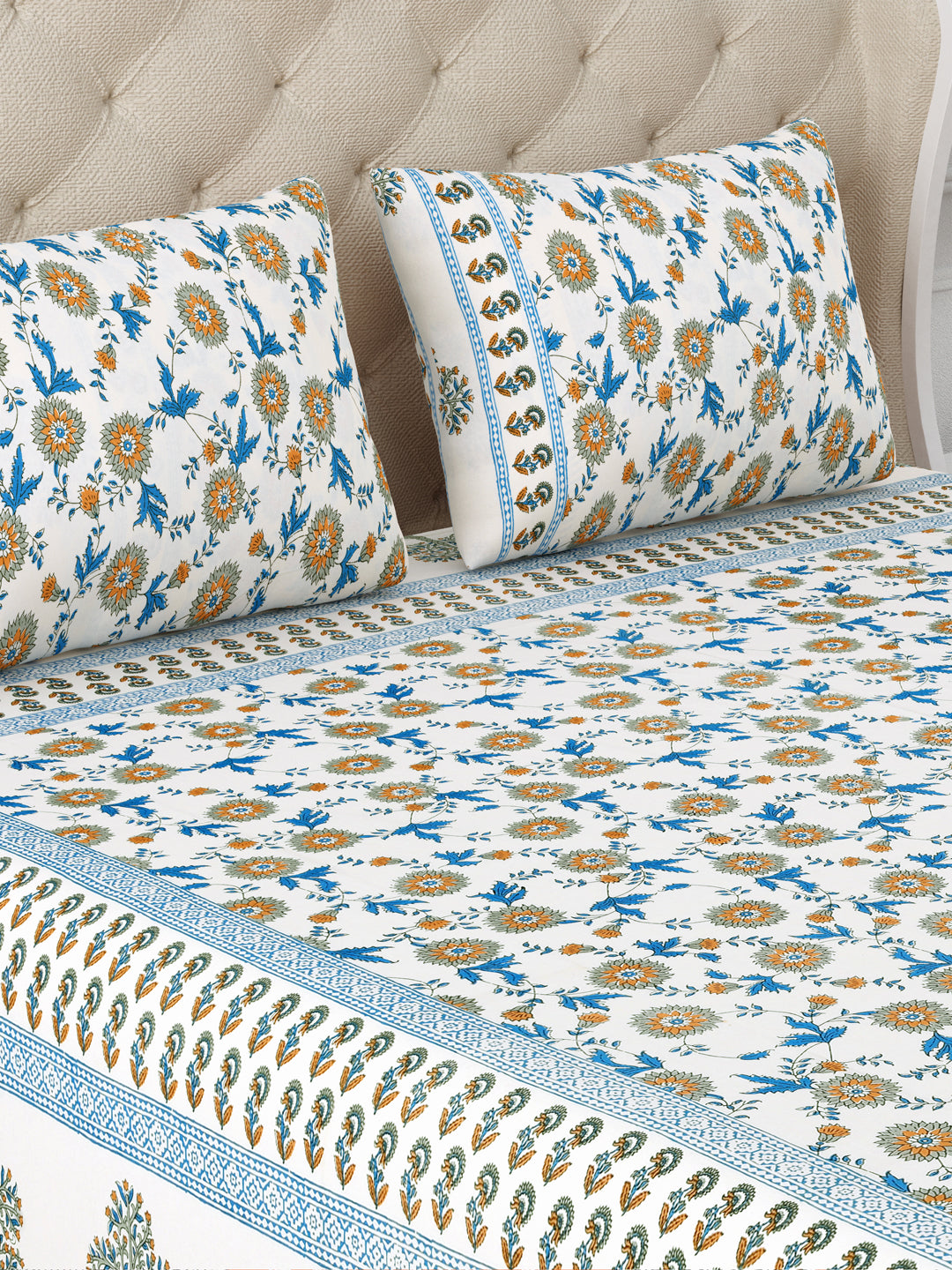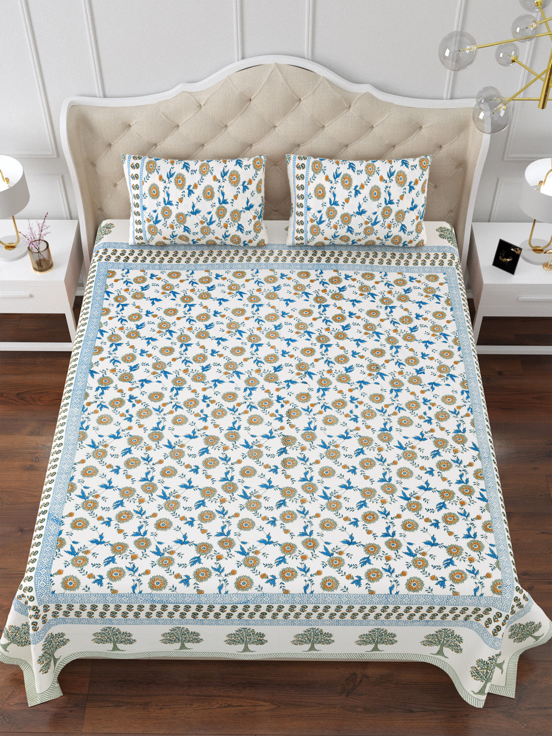 Blue Horizon Cotton Double Bedsheet with 2 Pillow Covers