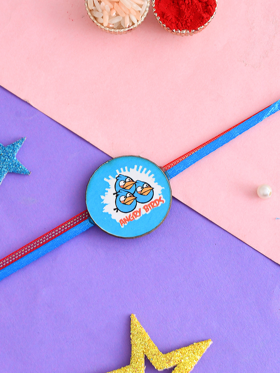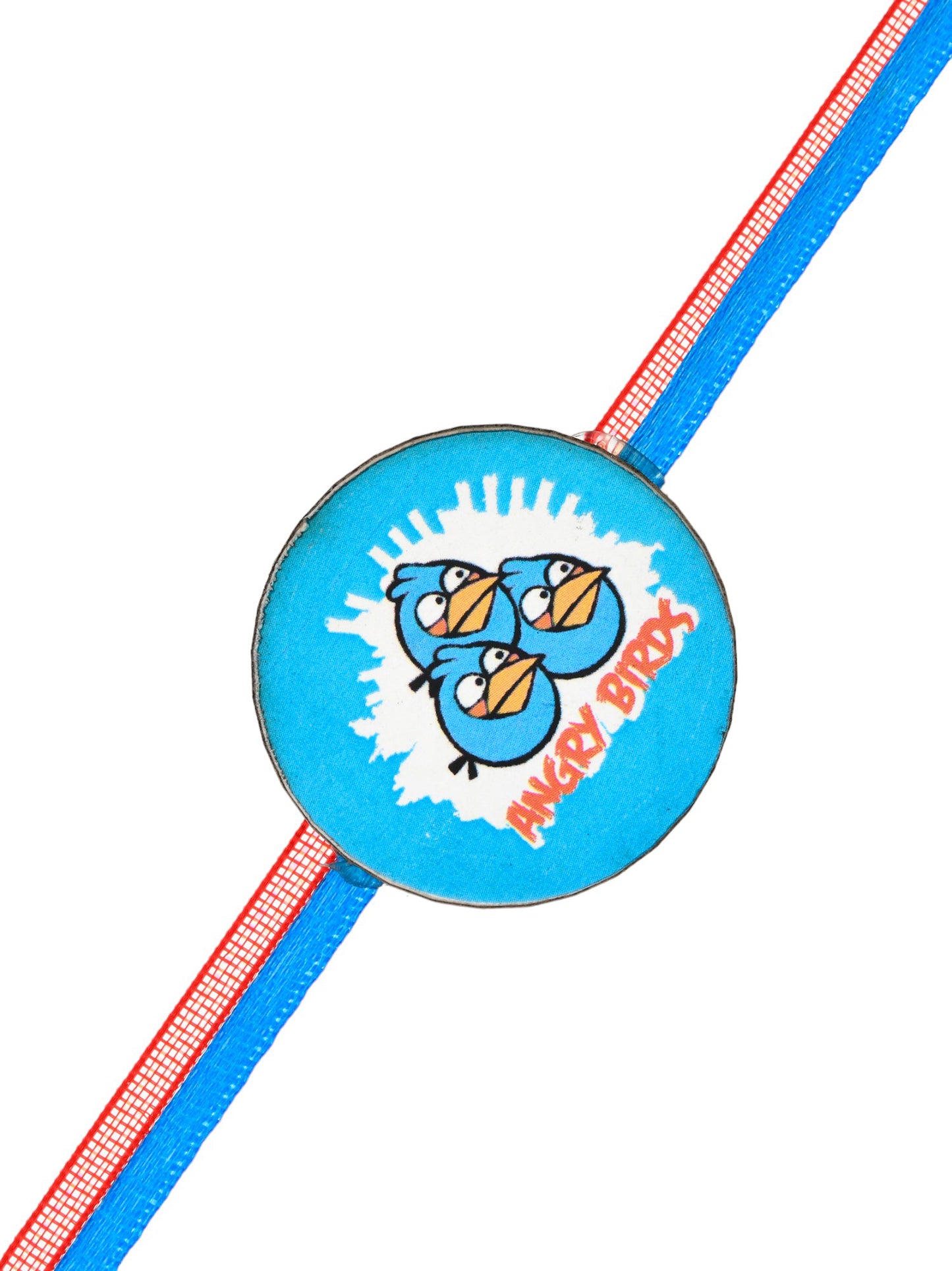 Blue Tri Angry Birds Motif Kids Rakhi comes with Shagun Tika and blessings. This Rakhi is specially designed to make little brother & sister happy. Rakshabandhan is a festival of celebrating and honouring sibling love. brings home-spun Rakhis prepared in the time honored tradition and with same love & care that matches sisterly love. Respecting the values that Rakhi represents we bring you Rakhis made with auspicious material like Mauli and woven with Rudraksh, kowdi, kundan, Zardosi etc.; Our exclusive collection have lovely handcrafted Rakhis made from Silver , Natural Sandalwood beads, American Diamonds, Pure natural Rudraksh, Enamel work, Golden beads , cut glass and crystals , Mauli , Zardosi , Zari and Resham work, Real Polki , Beautiful Kundans, Real Peacock Feathers , Precious and semi precious stones with Fresh water s in many shades. Rakhis will be shipped exactly as shown but in case of last moment shortages similar character in assorted designs and colour will be shipped. The Set Contains- 1 Kids Rakhi::1 Tilak Pack (Roli+Rice+Chandan+Mishri)::1 Dairy Milk Bar (8 Gms)::1 Rakhi Message Card; Option of sending 8 pcs Homemade Chocolates is also available with this product; Brand- Aapno Rajasthan