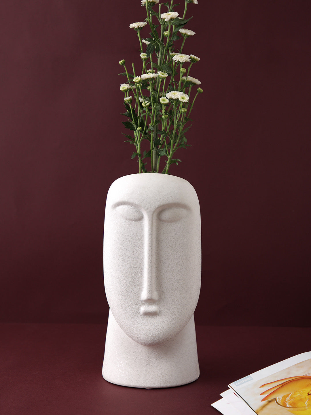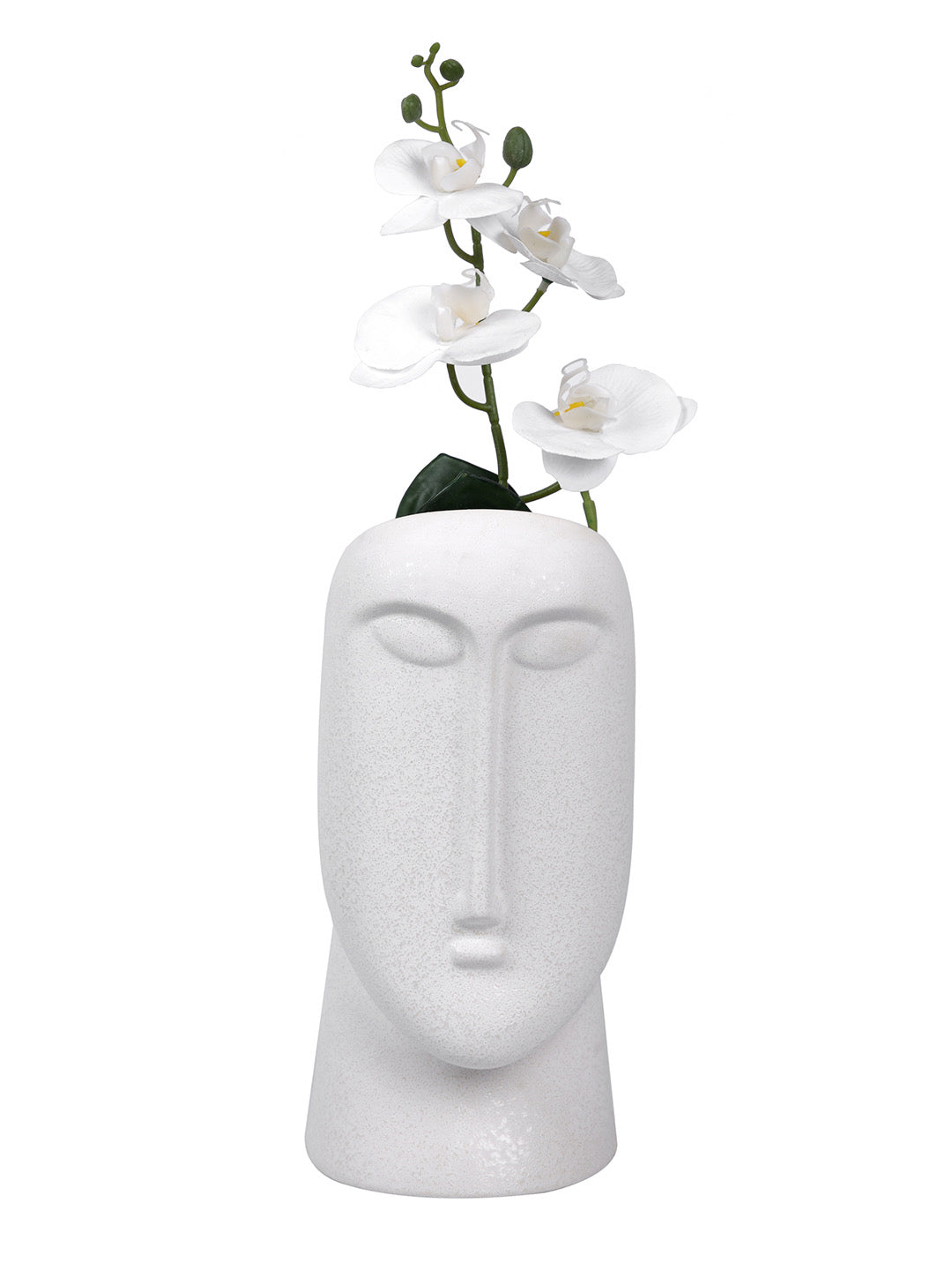 • Carefully crafted face pot/vase in ceramic that can add a stylish touch to a room setting.