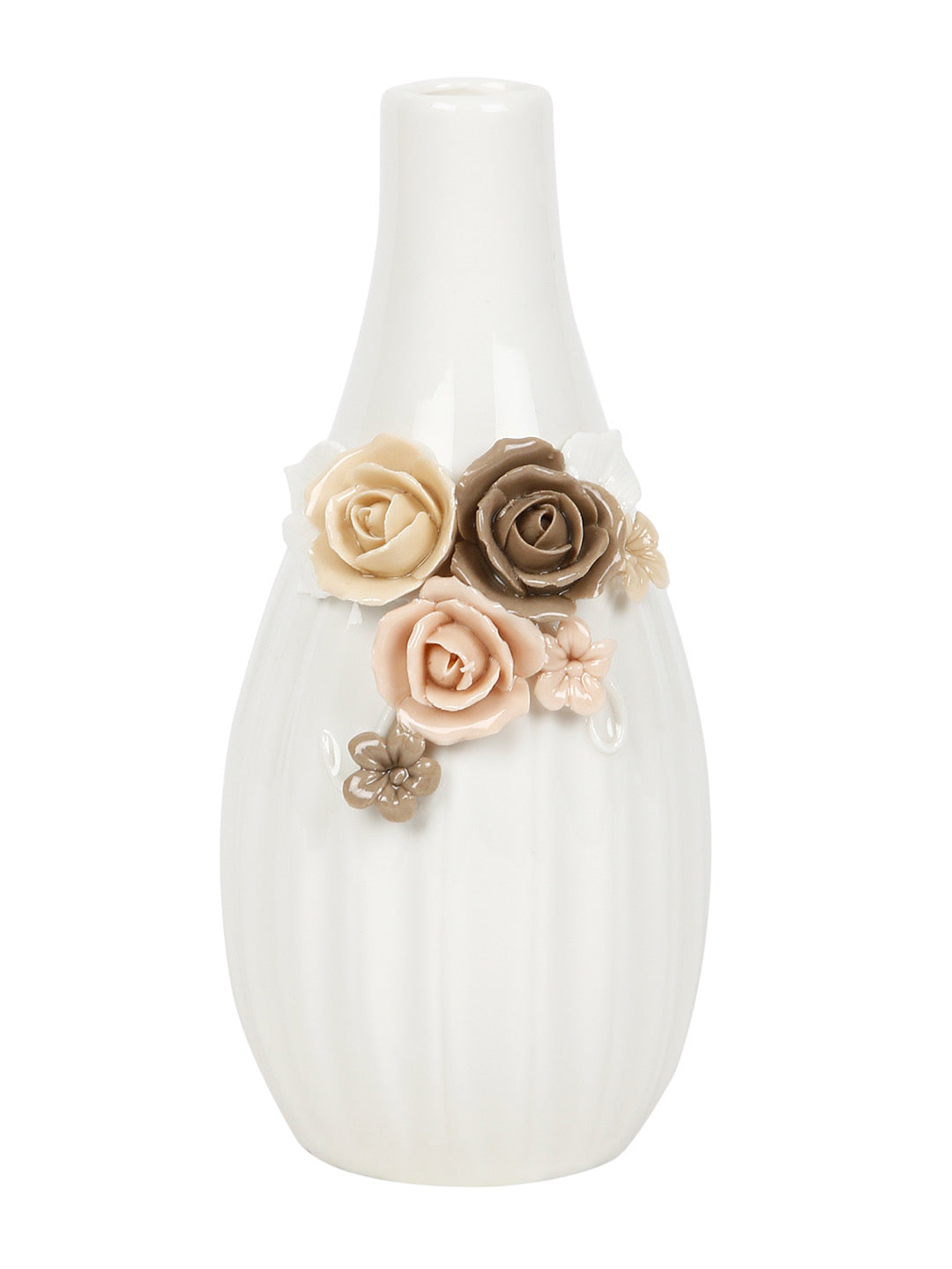 • This timeless ceramic vase is embellished with a gorgeous rose flowers. A rose symbolizes promise, hope, and new beginnings.