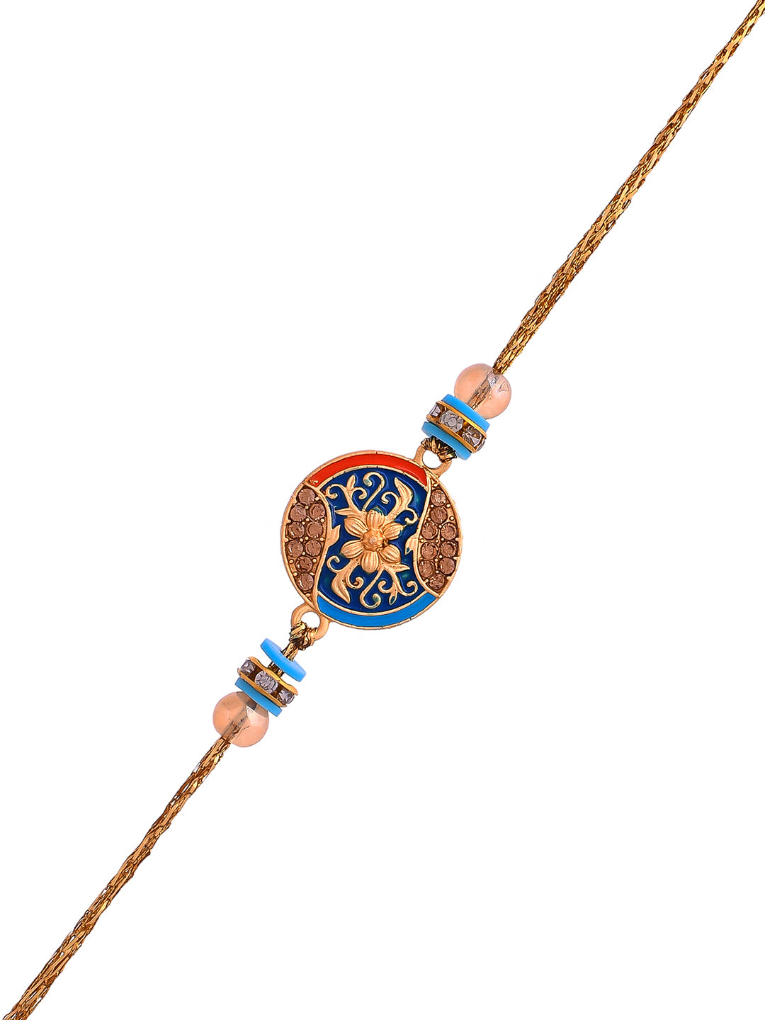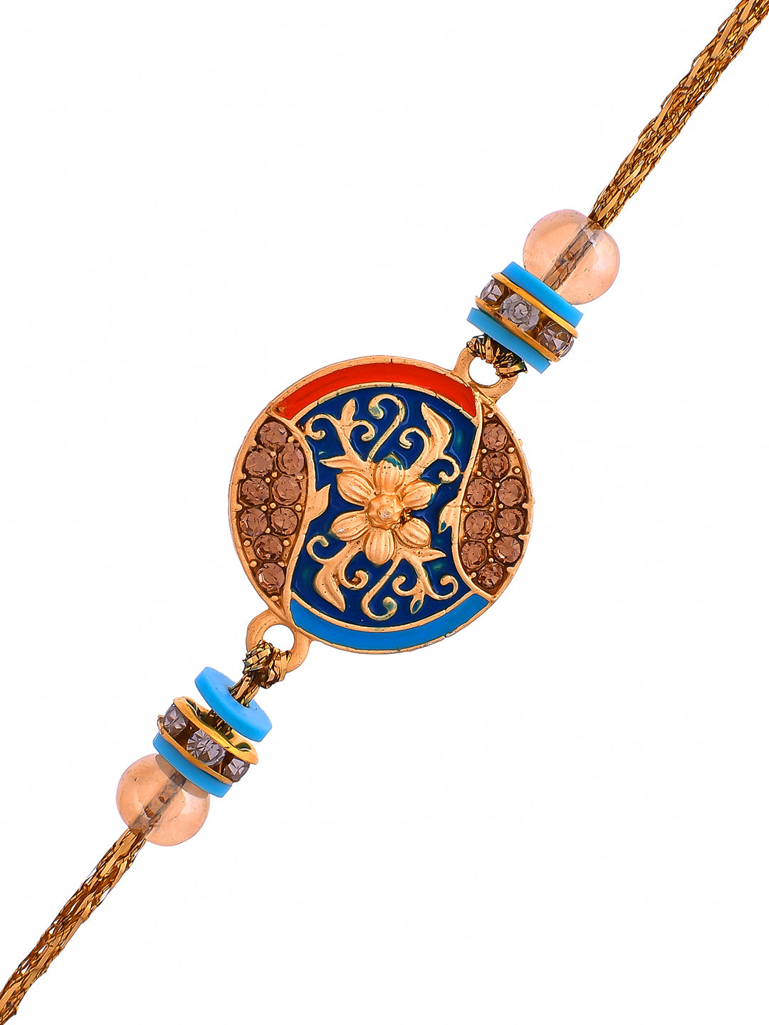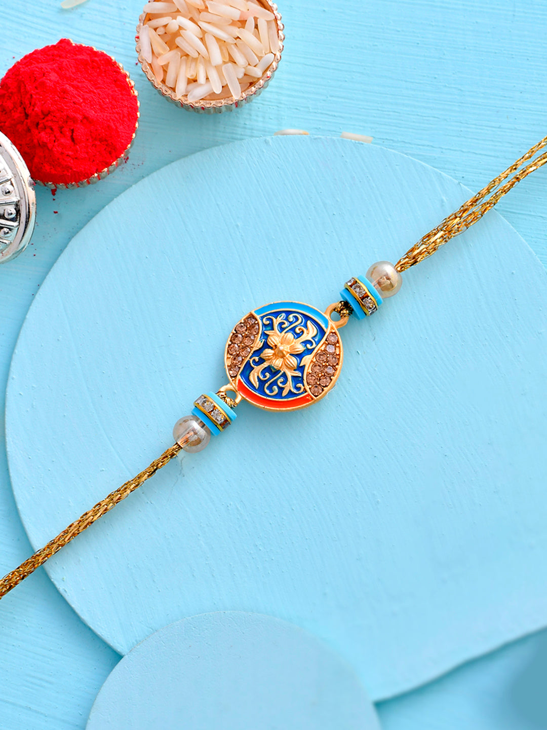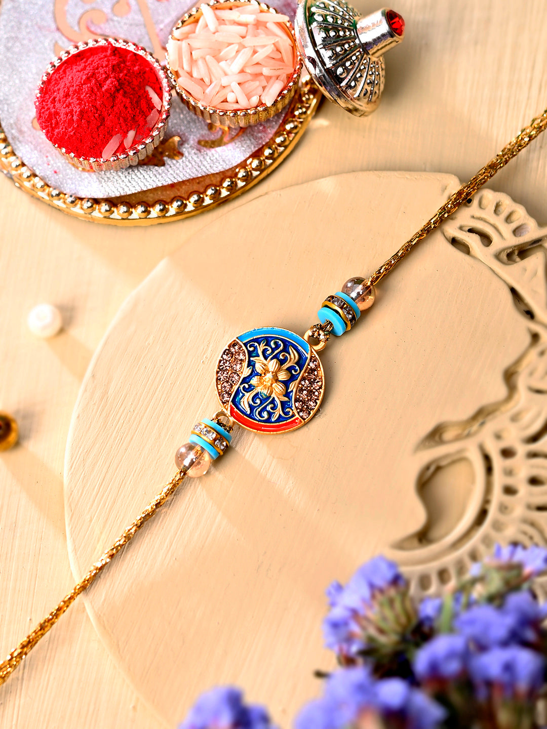 Elegant Enameled & Embellished Royal Blue Rakhi