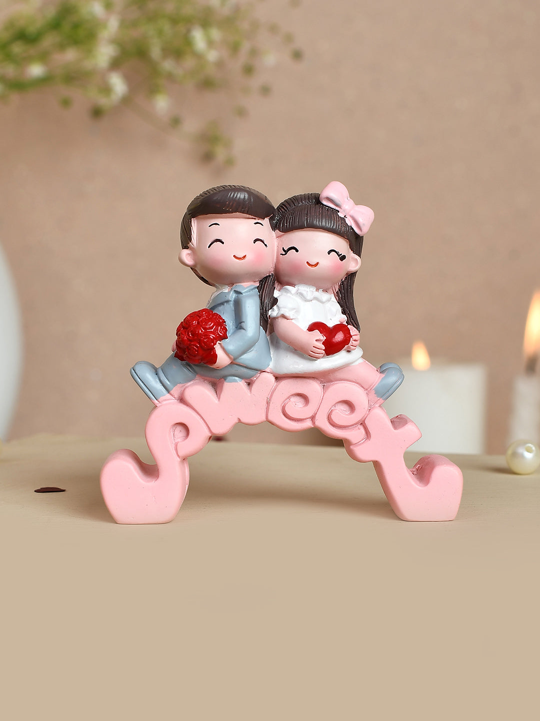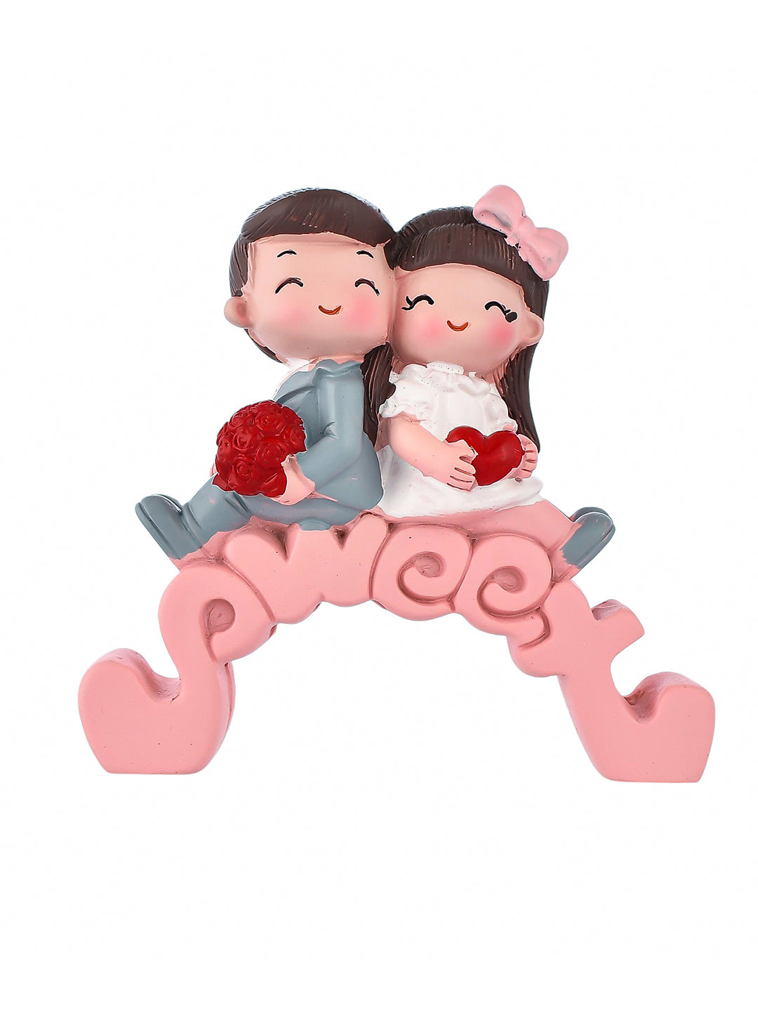 Introducing the Eternal Romance Couple Showpiece, a captivating showpiece that embodies the timeless essence of love. This beautifully crafted figurine features a romantic couple sitting on a bridge made out of the word 'love', symbolizing the enduring strength of their connection. Made with meticulous attention to detail, the Eternal Romance Couple Showpiece captures the grace, passion, and intimacy of true love. Place it on a shelf, mantle, or as a centerpiece to infuse your space with a sense of romance and warmth. Celebrate the magic of love with this exquisite and meaningful couple sculpture, adding a touch of enchantment to your home decor.