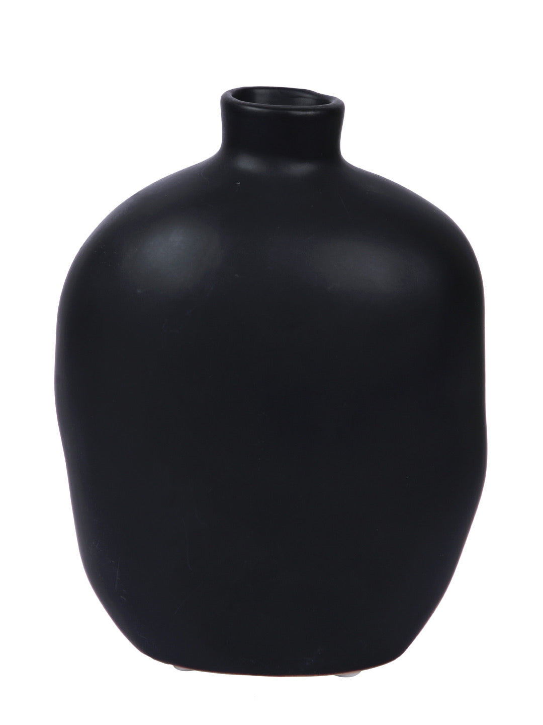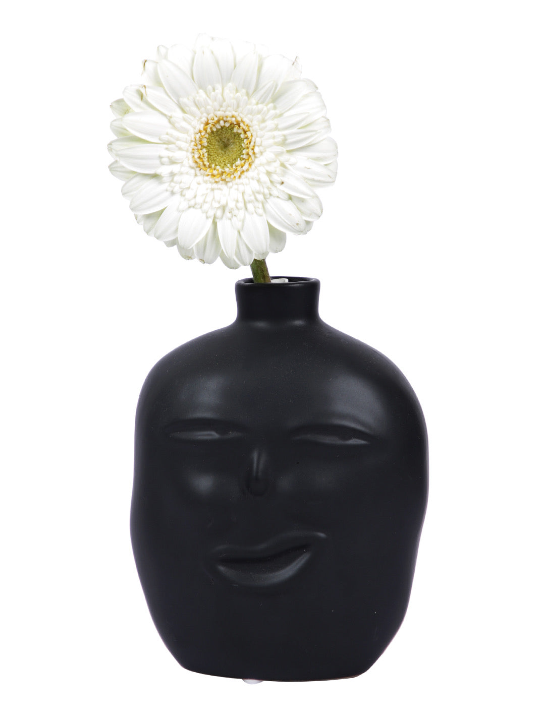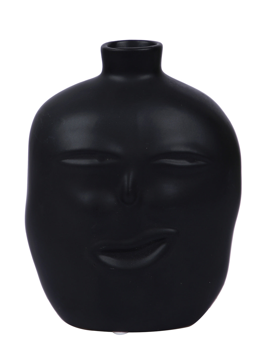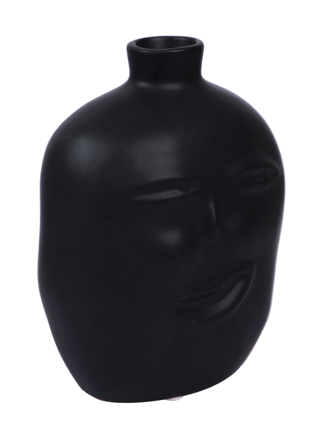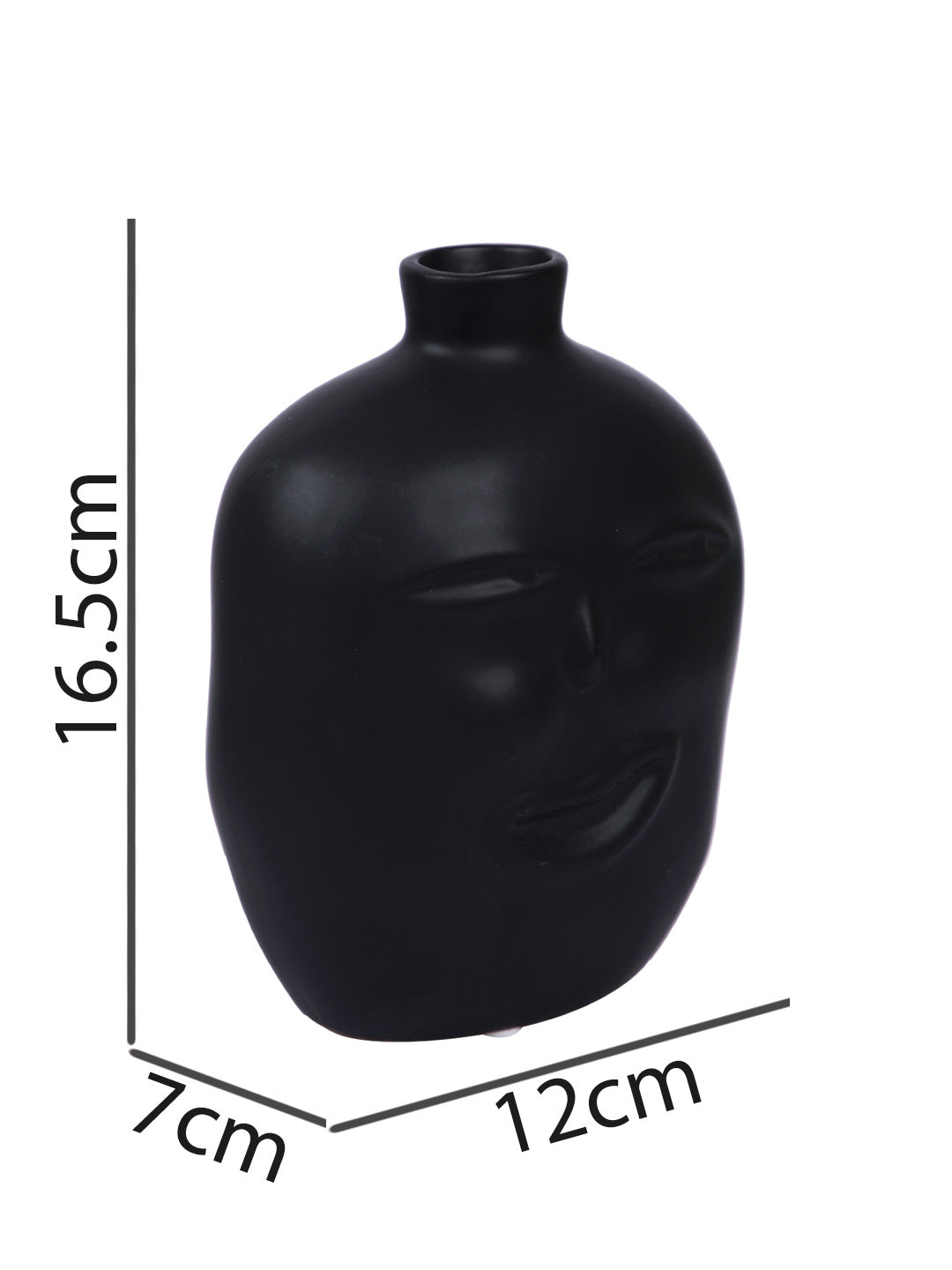 Face Shape Ceramic Vase with Narrow Neck - Black
