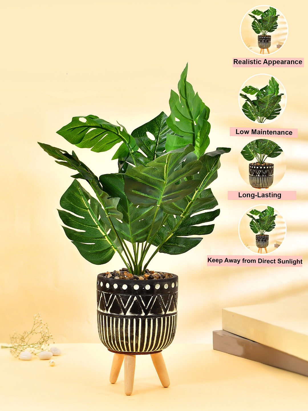 Material: Ceramic & Plastic Package Content: 1 Artificial Plant with Pot This black and white tripod planter with an artificial green plant will uplift your home decor due to its tribal mix with elegance design. Constructed from ceramic, this tripod planter with an artificial plant will provide a contemporary twist on tribal aesthetics, making it a modest and excellent addition to any decor. The pot will surely stand out due to its unique design yet remain to be elegant and modest due to its color. Place this artificial plant with tribal planter in your bedroom, living room, kitchen, office, or any space in need of a vibrant and artistic flair! Care Instruction: Wipe with clean & soft dry cloth to remove dust.