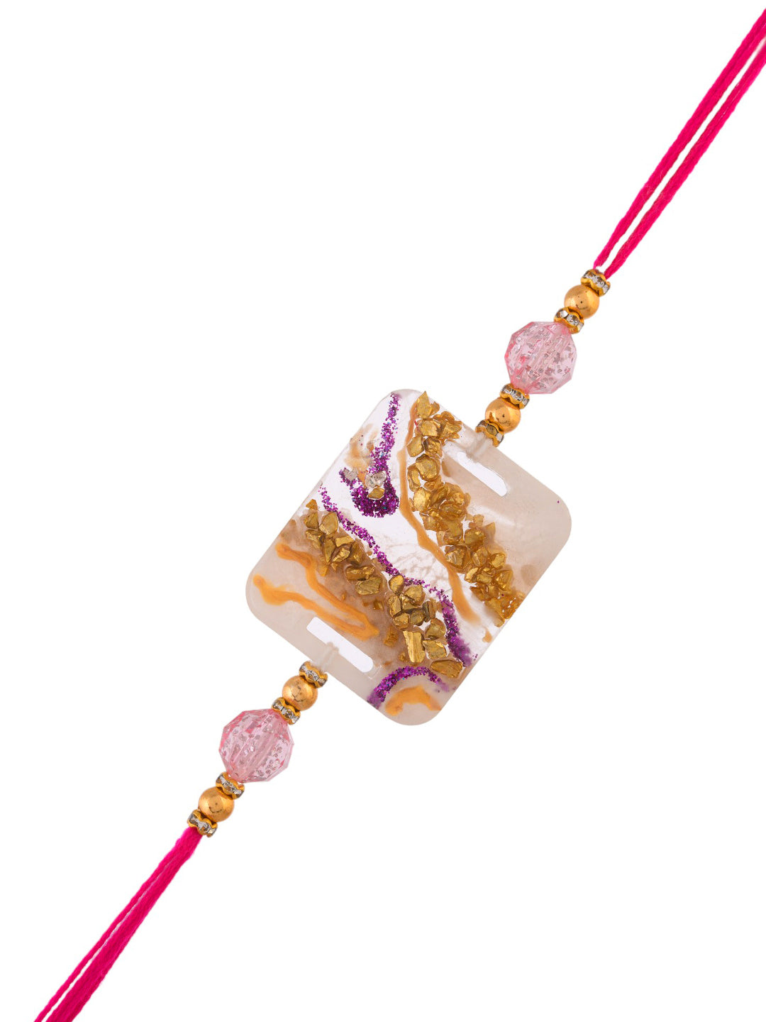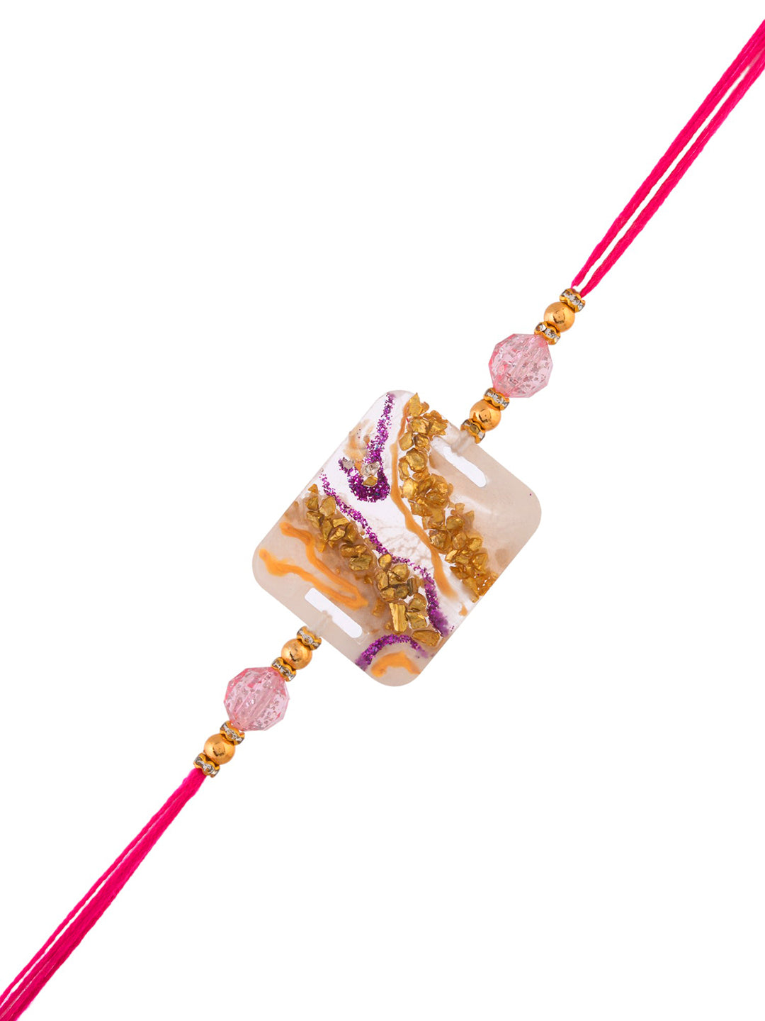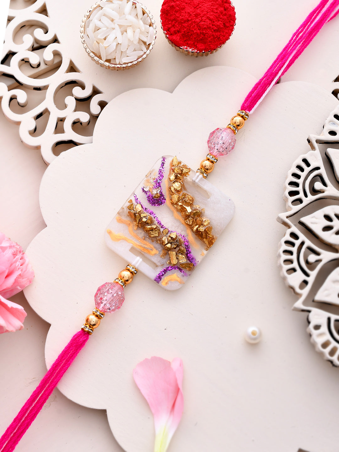 Gold & Purple Resin Designed Pink Thread Rakhi
