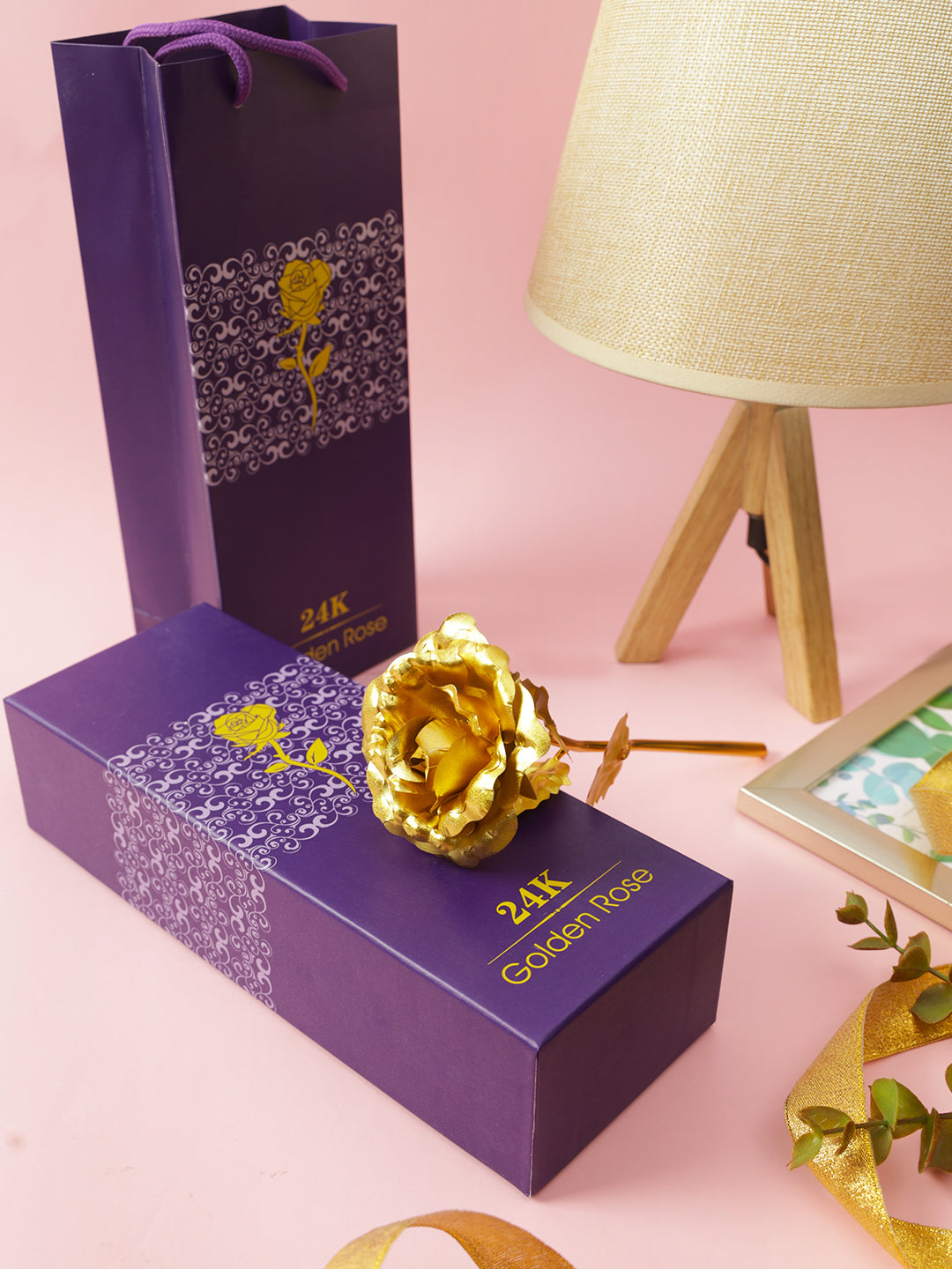 Introducing the Golden Elegance Rose, a stunning and timeless piece that combines the beauty of a rose with the shine and charm of gold plating. Each petal of this meticulously crafted rose is delicately coated in a lustrous layer of gold, creating a captivating and everlasting symbol of love and luxury. The Golden Elegance Rose makes for a sophisticated and meaningful gift, perfect for expressing love, admiration, or appreciation. Whether displayed in a vase or presented in a special case, this exquisite gold plated rose adds a touch of glamour and sentimentality to any occasion, making it an enduring and cherished keepsake.