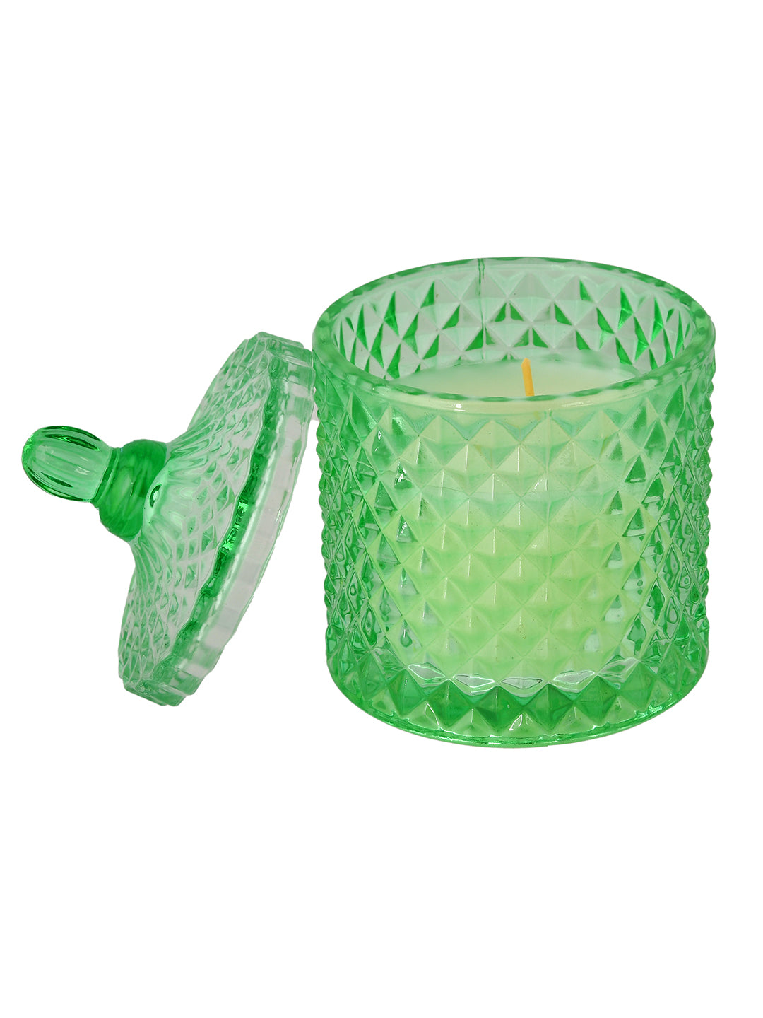 Set Content: 1 Candle Material: Wax Elevate your ambiance with the enchanting glow of our Scented Candle. Housed in a beautiful glass jar adorned with intricate pattern, emphasizing a sense of rhythm, harmony, and color. This candle is more than just a source of fragrant illumination; it's a piece of art that enhances your decor. Care Instruction Wipe with soft dry cloth to remove dust.