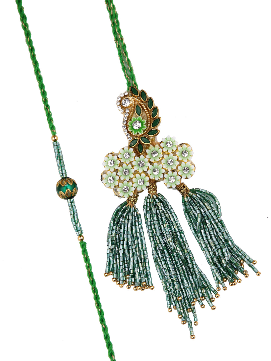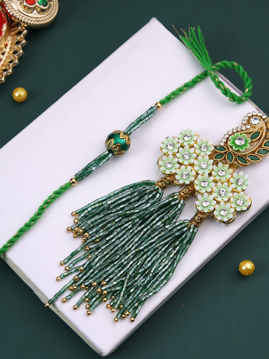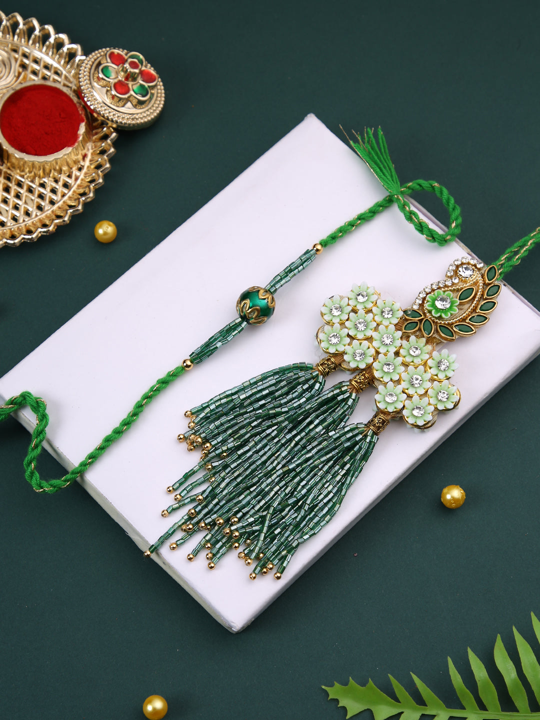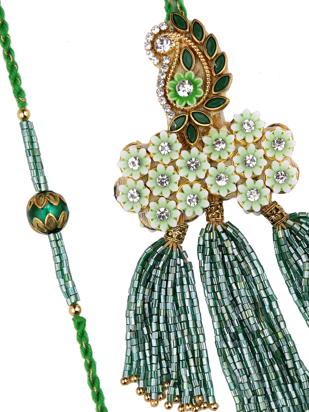 Green Floral Stone Work Bhaiya Bhabhi Rakhi