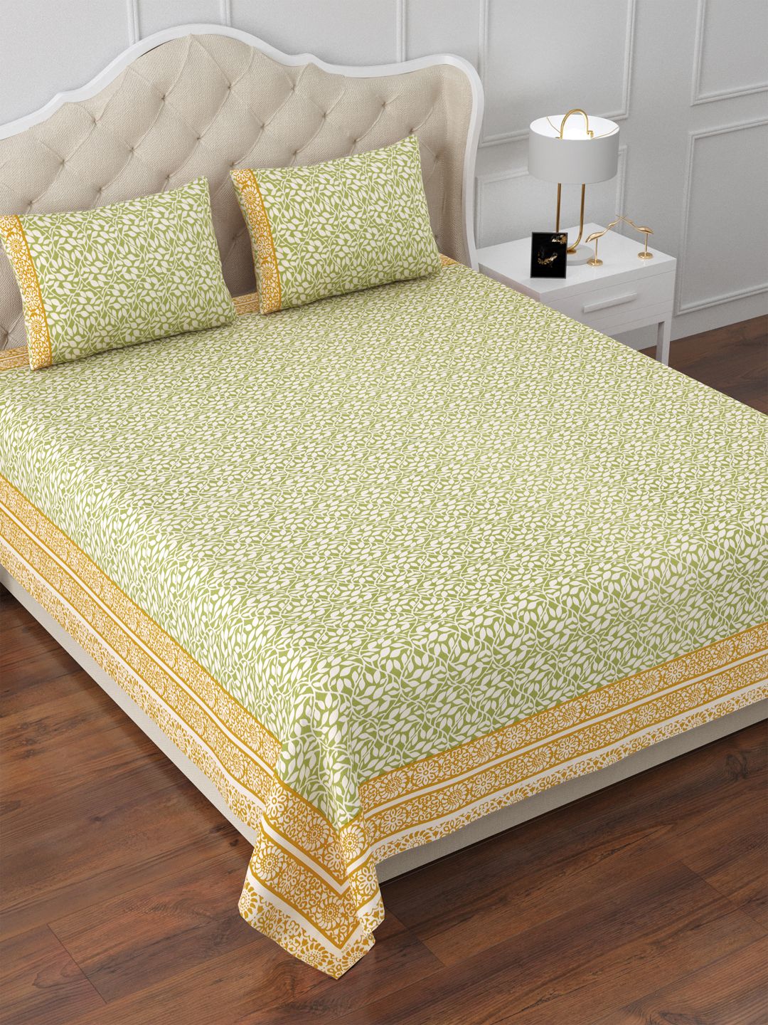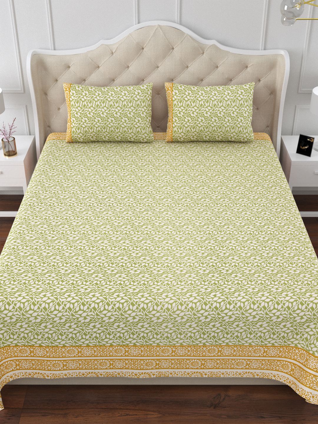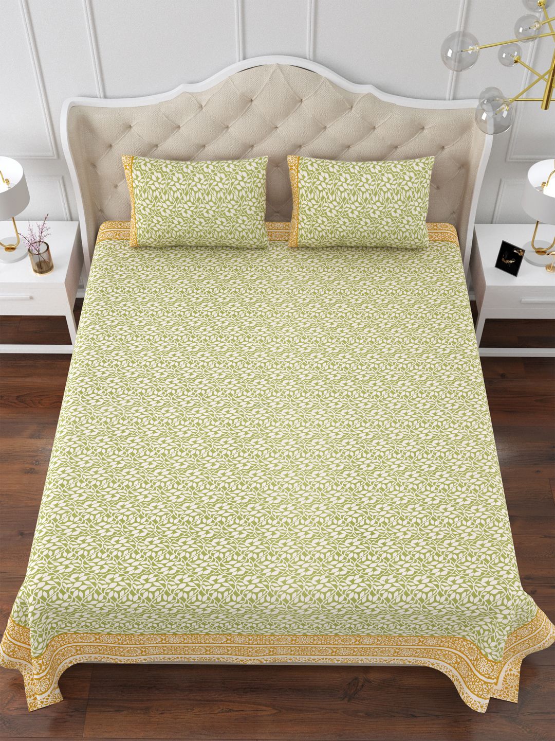 Green Garlands 144TC Cotton Double Bedsheet with 2 Pillow Covers