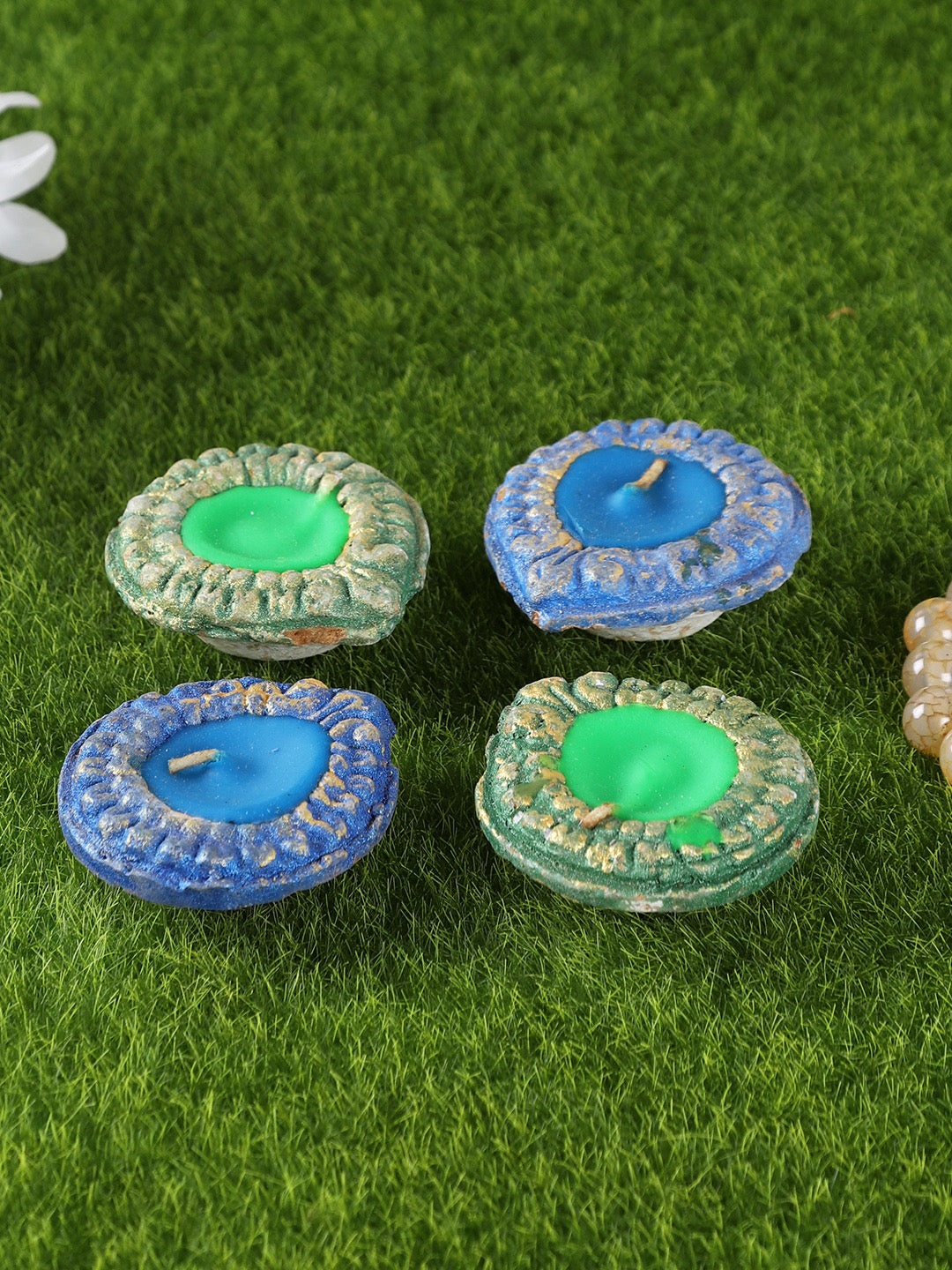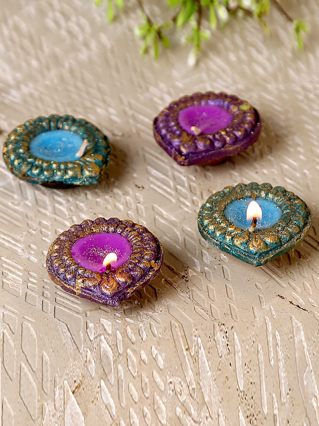 Handcrafted Wax Filled Terracotta Diyas - Set Of 4