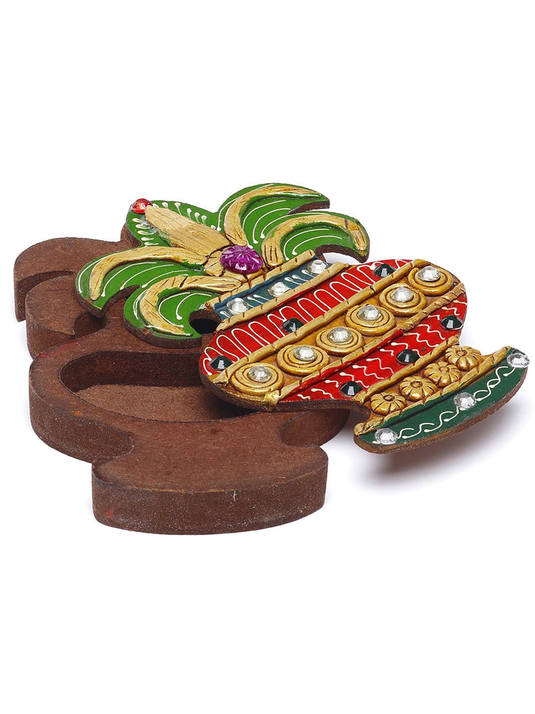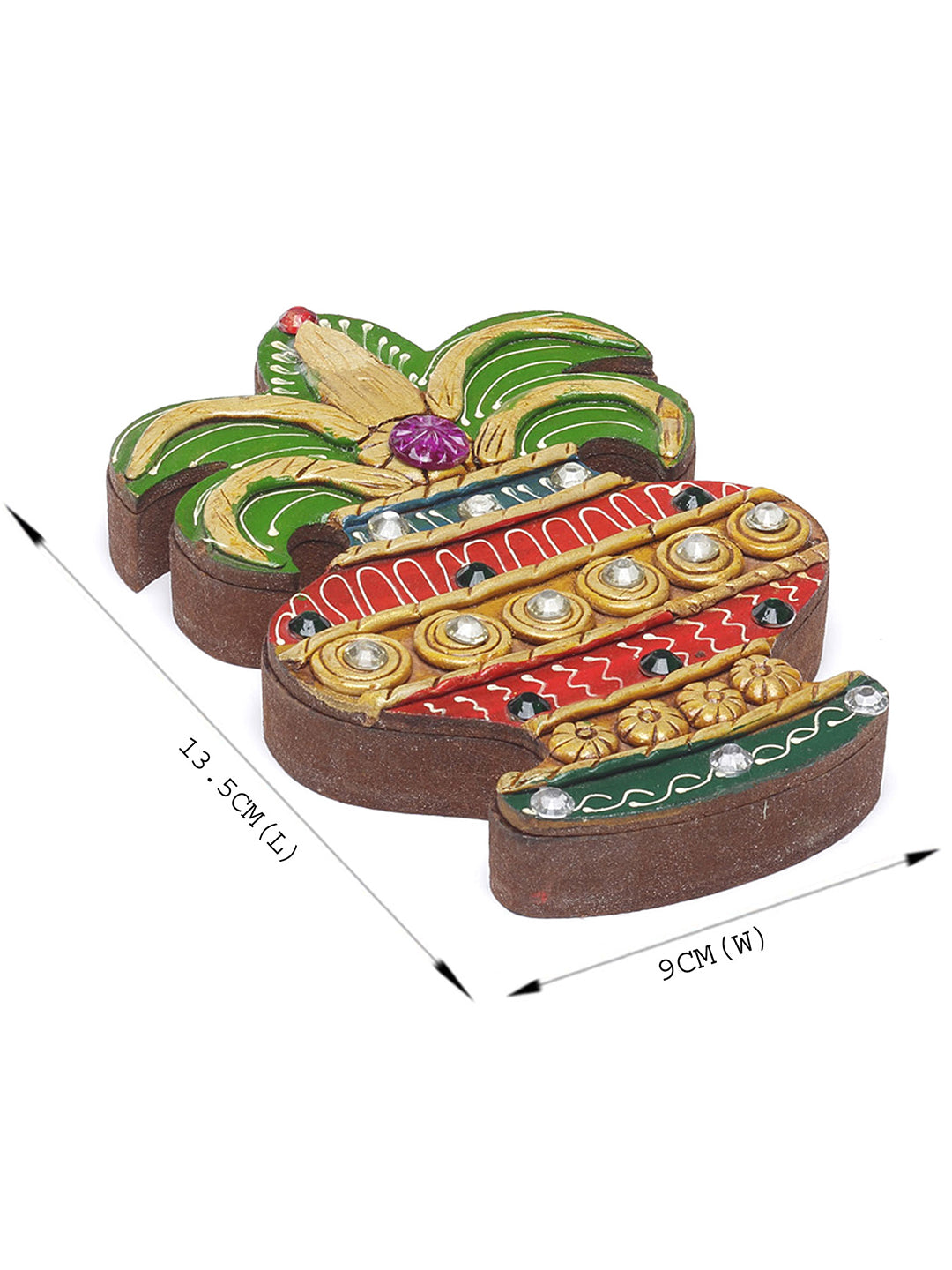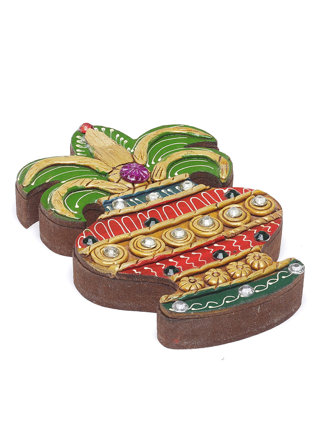 The perfect accessory for every accessory, this jewelry box keeps pendants, earrings, bracelets and more safely stored. With three drawers divided compartment, the wood and clay work jewelry box accommodates a vast accessory collection. A Kalesh design jewelry box with traditional clay work add a distinguish look to the piece with classic style. Adds the perfect finishing touch to any table.
