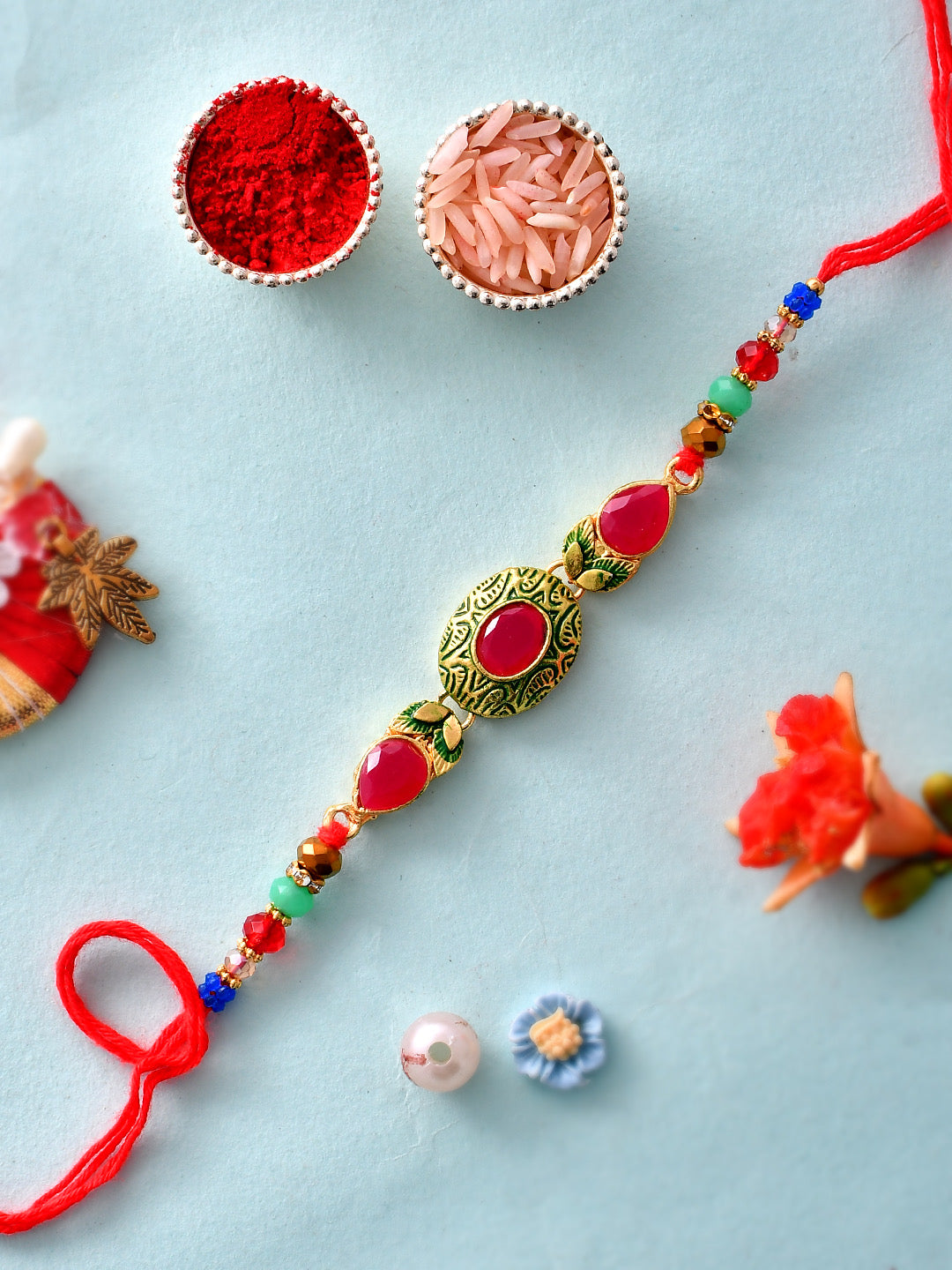 Kundan & Beads Crafted Traditional Bhaiya Rakhi