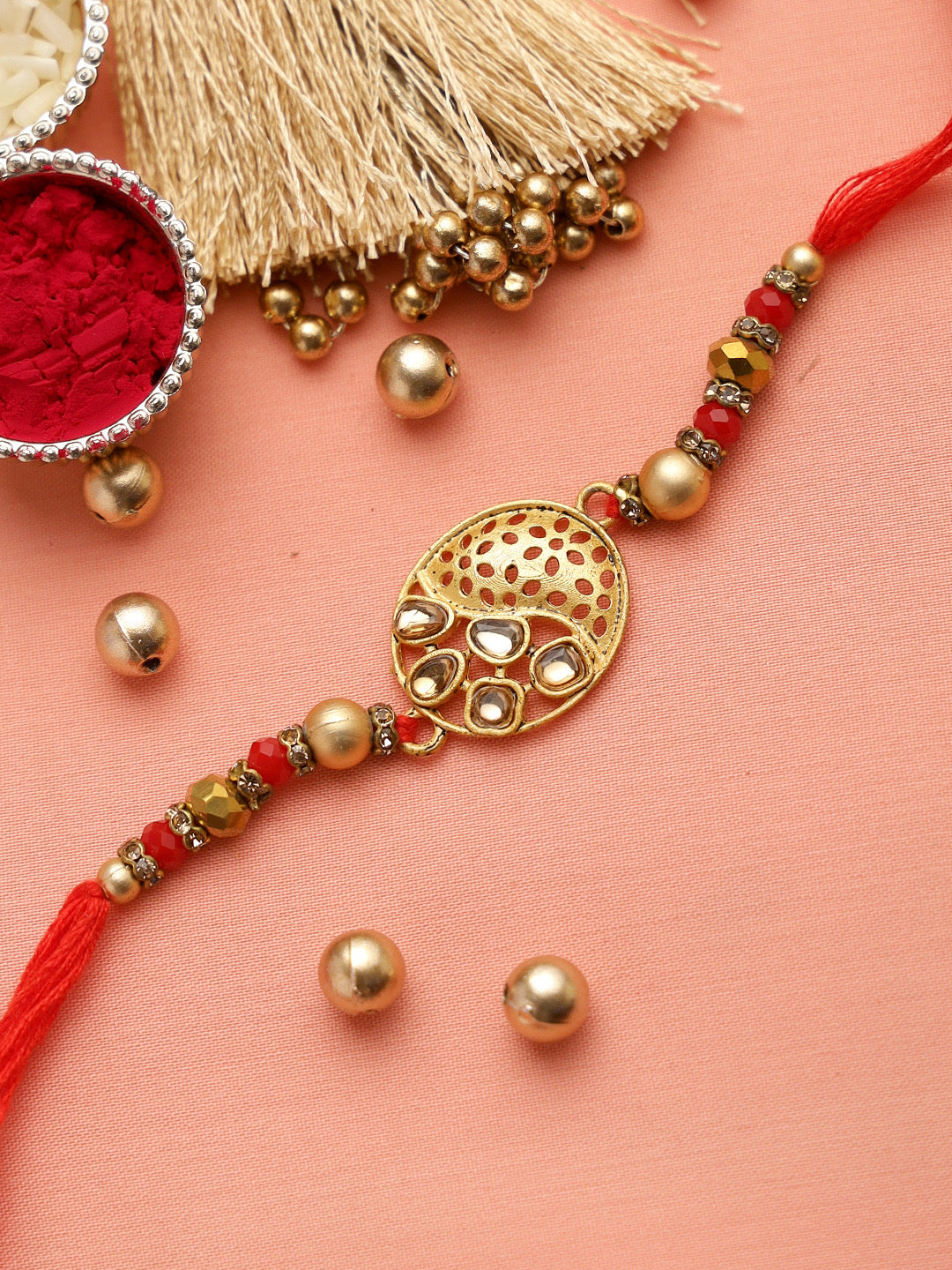 Kundan like stone Golden Rakhi