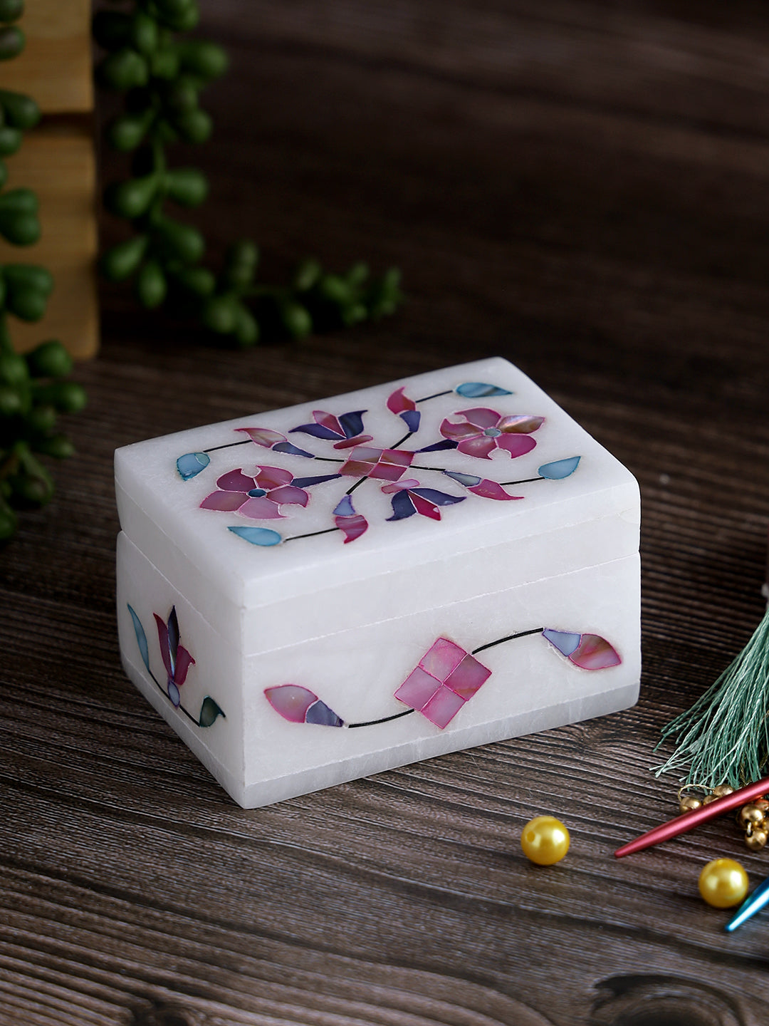 Lazuli Floral Marquetry Inlay Marble Jewelry Box