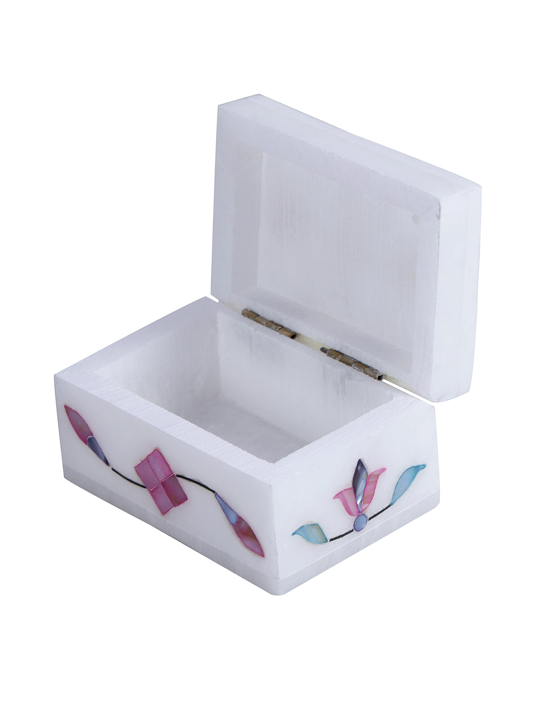 Set Content: 1 Jewelry Box/Organizer Material: Marble • Marble box made by Indian craftsmen with inlay technique makes it a very special product which can be used for jewelry storage or to gift to your someone special. • The inlay work on the product, with hues of multicolor gives it an elegant feel. • It can be used for Home decor, Wedding Occasion, Corporate Gifts. Disclaimer • As this product is handcrafted there might be a slight variation which is natural outcome and hence makes the product unique. • Clean with a soft and dry cloth.