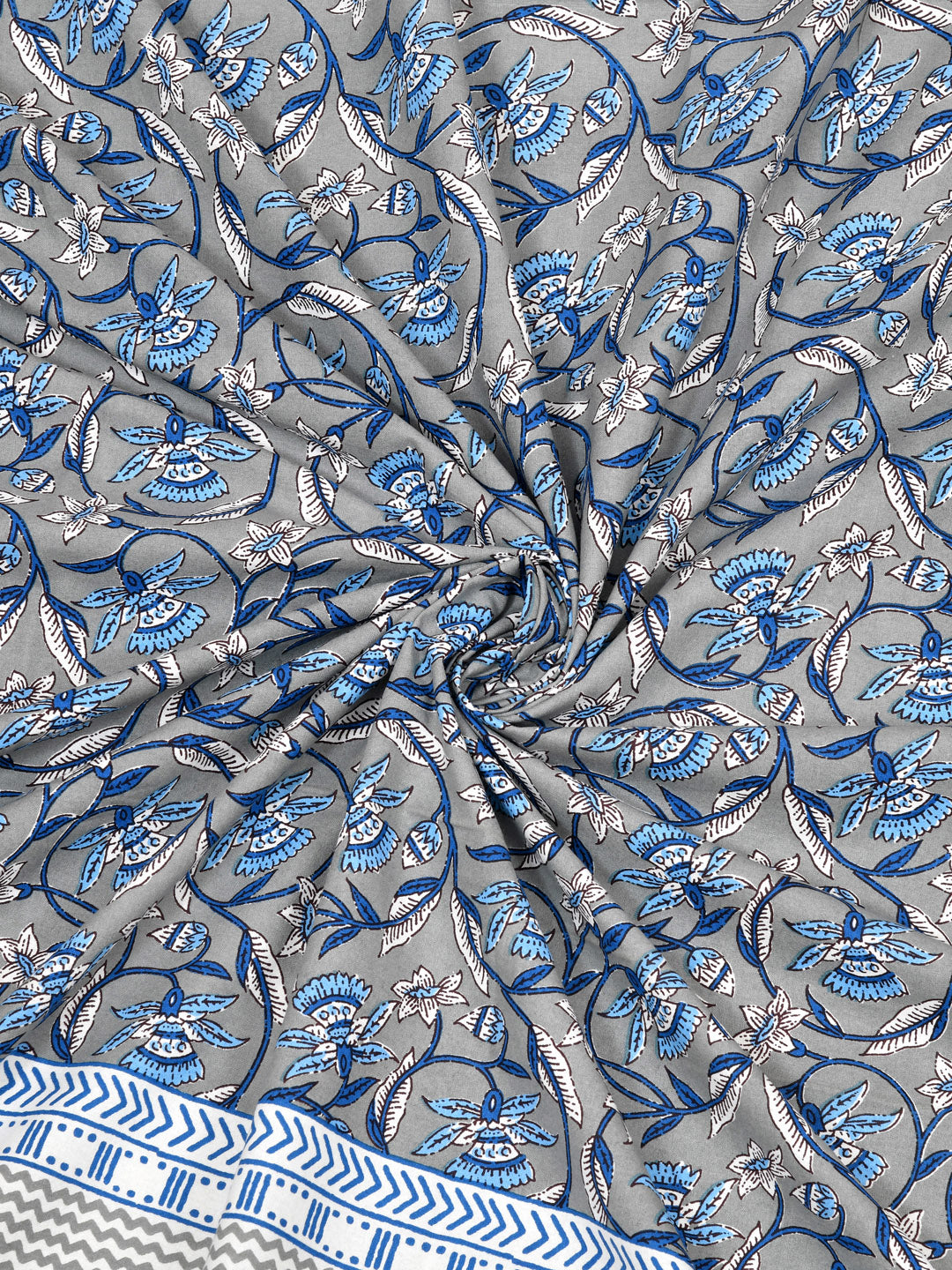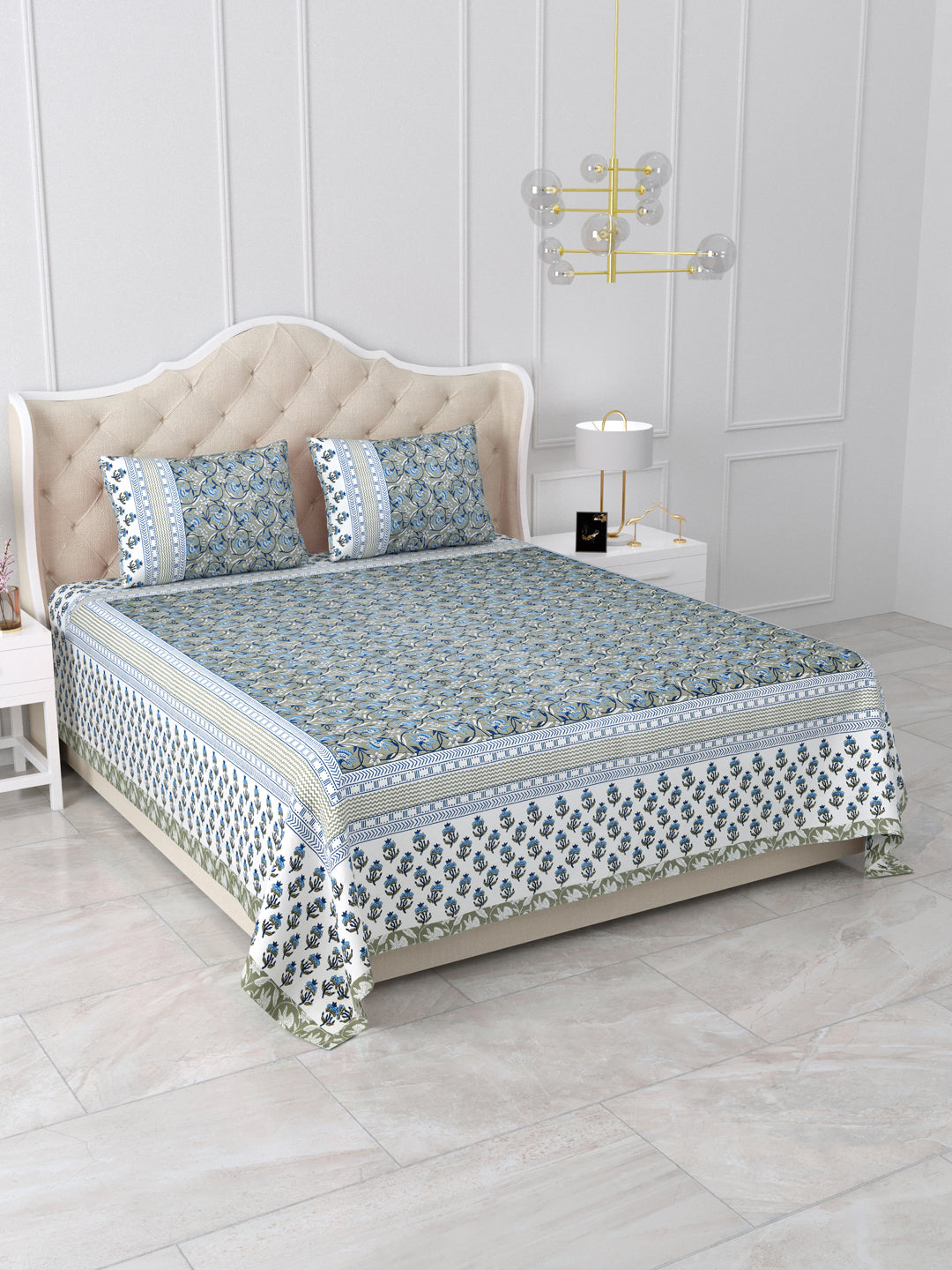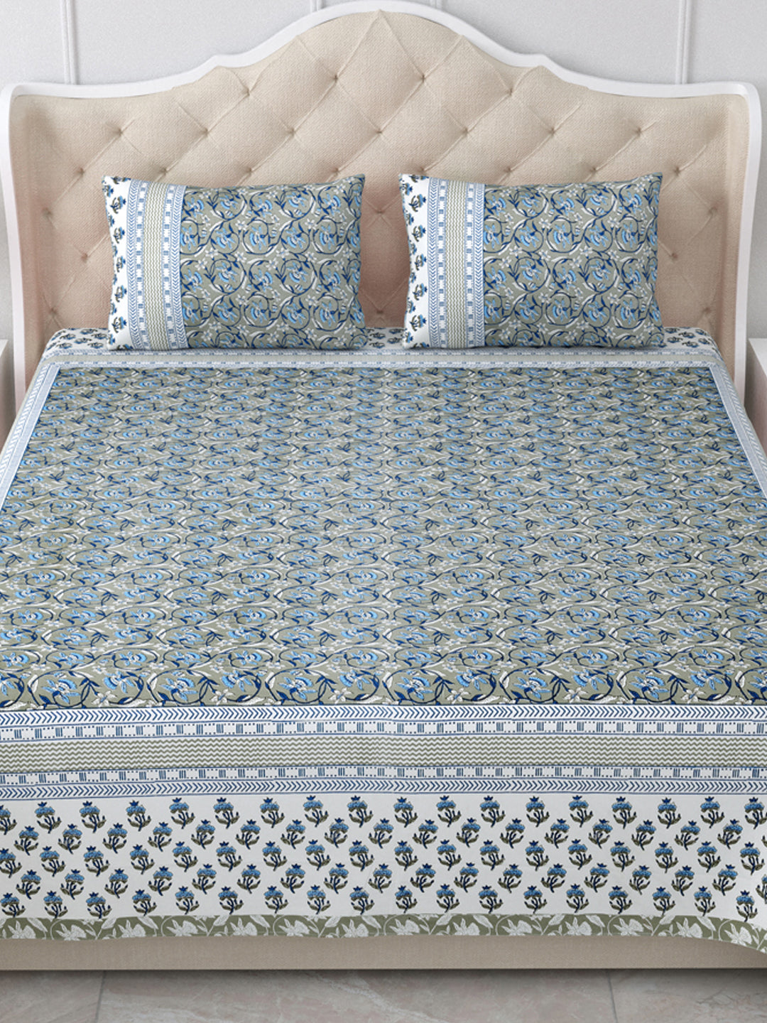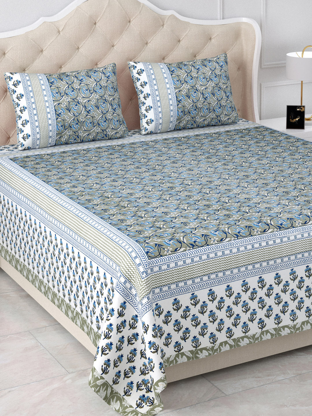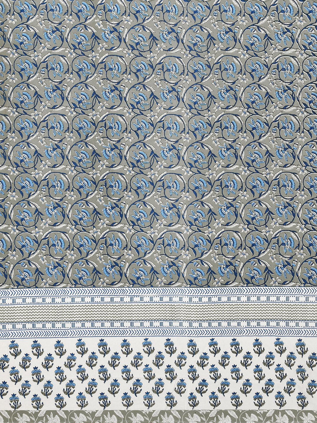 Maharaja’s Jewel Trail Grey & Blue Cotton Double Bedsheet with 2 Pillow Covers