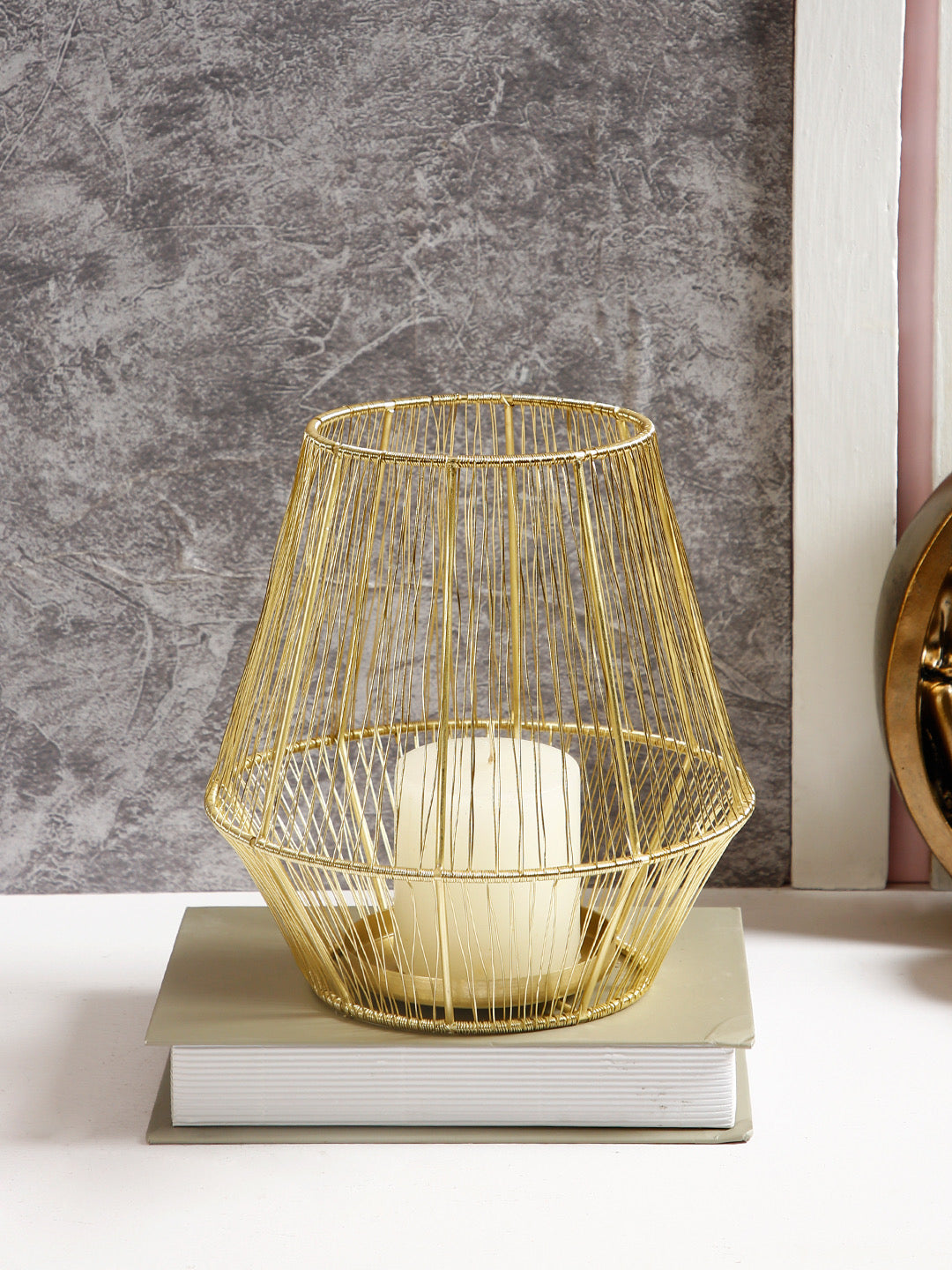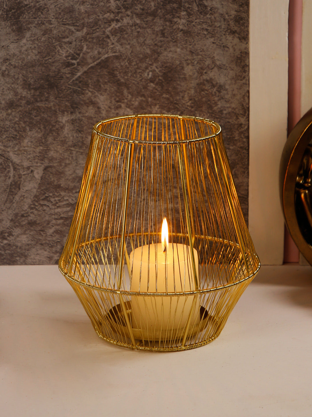 • With this intricate metal lantern, fill your room with warm light when want to display a candle.