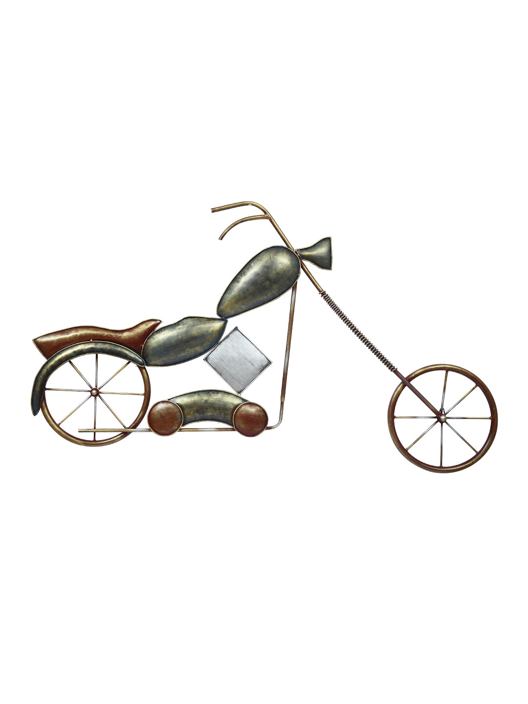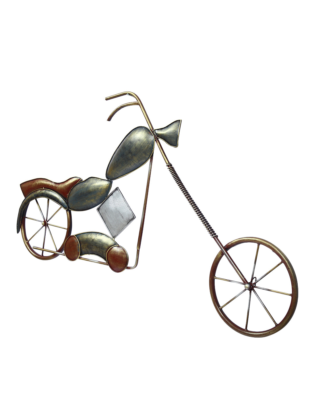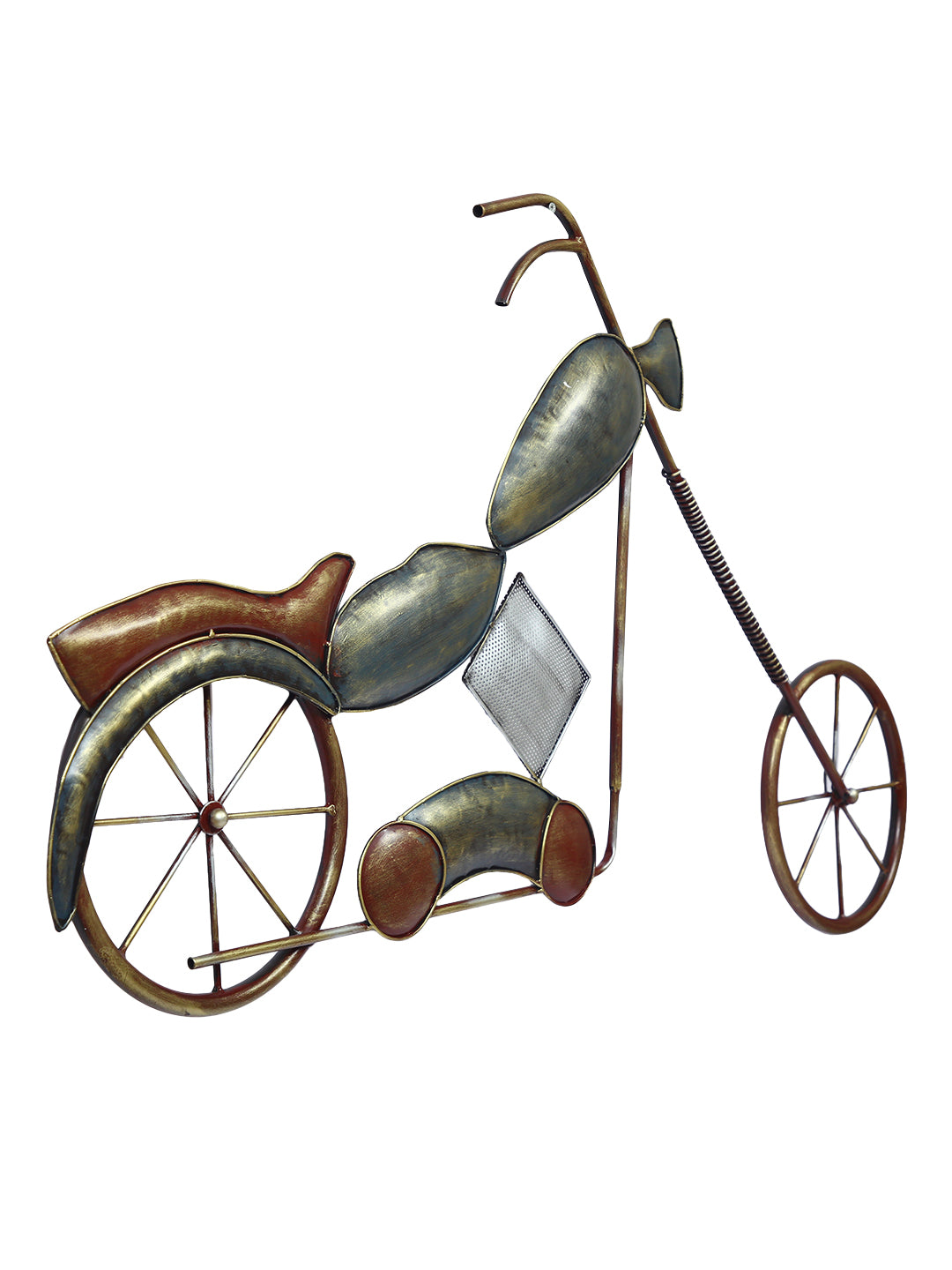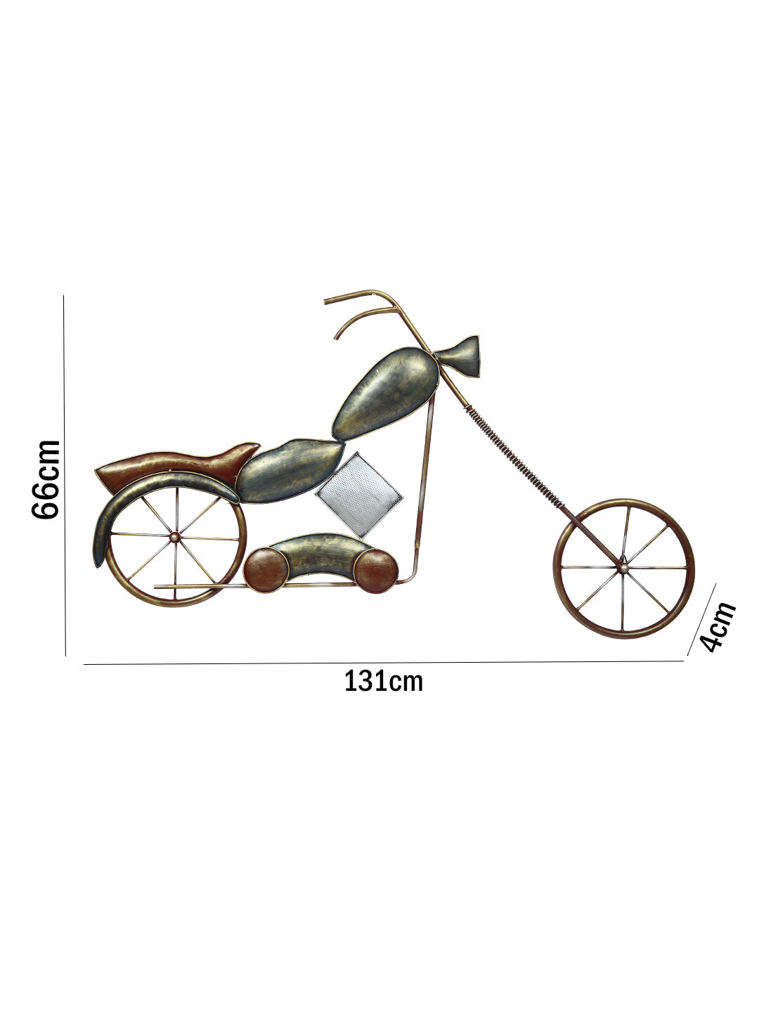 Material: Metal Features: 1. Let the walls of your home define you with this Metallic and Grunge Bike Wall Décor 2. This bike décor is detailed vehemently where it showcases the wheels and the body of the bike in a picturesque way 3. Show the macho you with this W-Morgan Bike Wall Décor