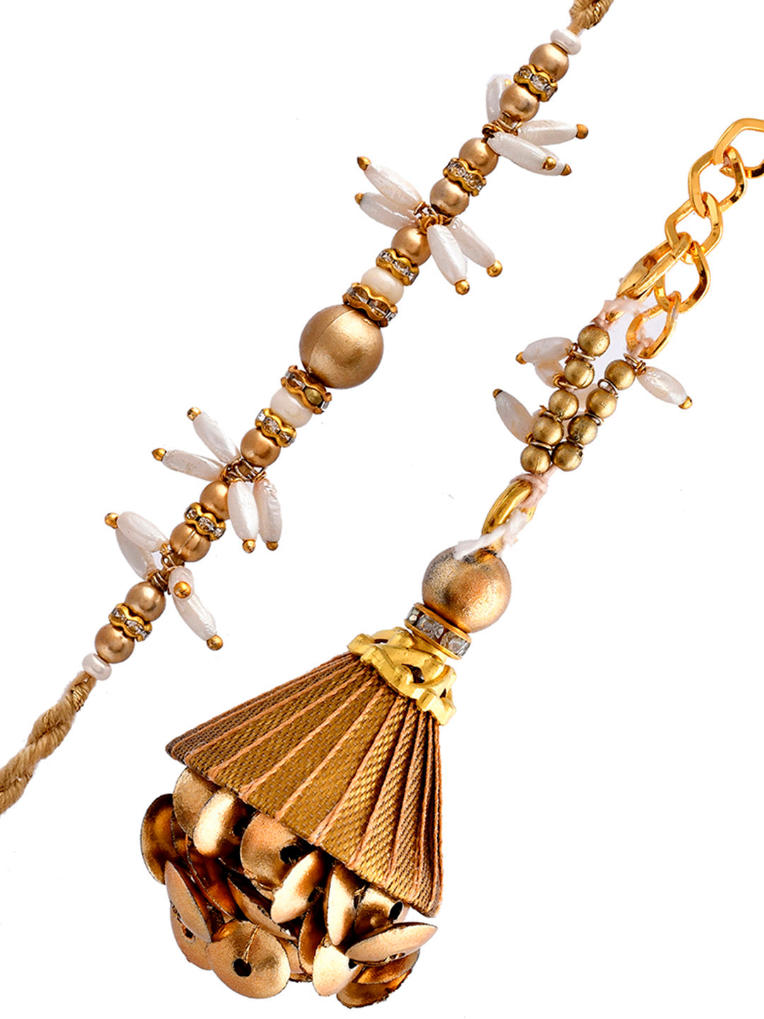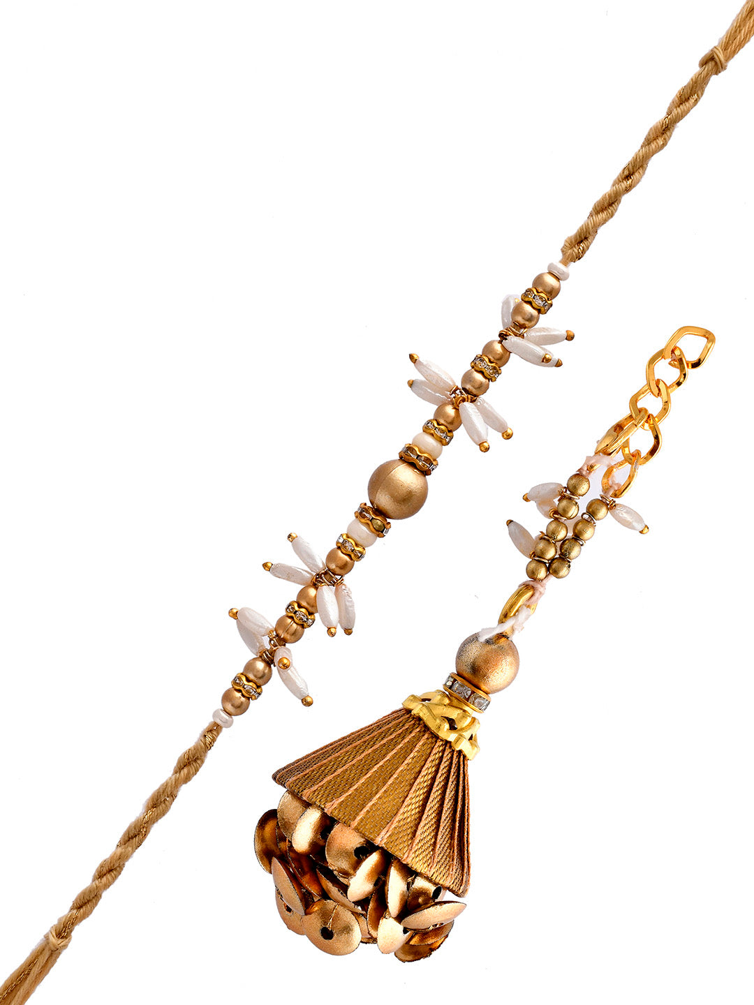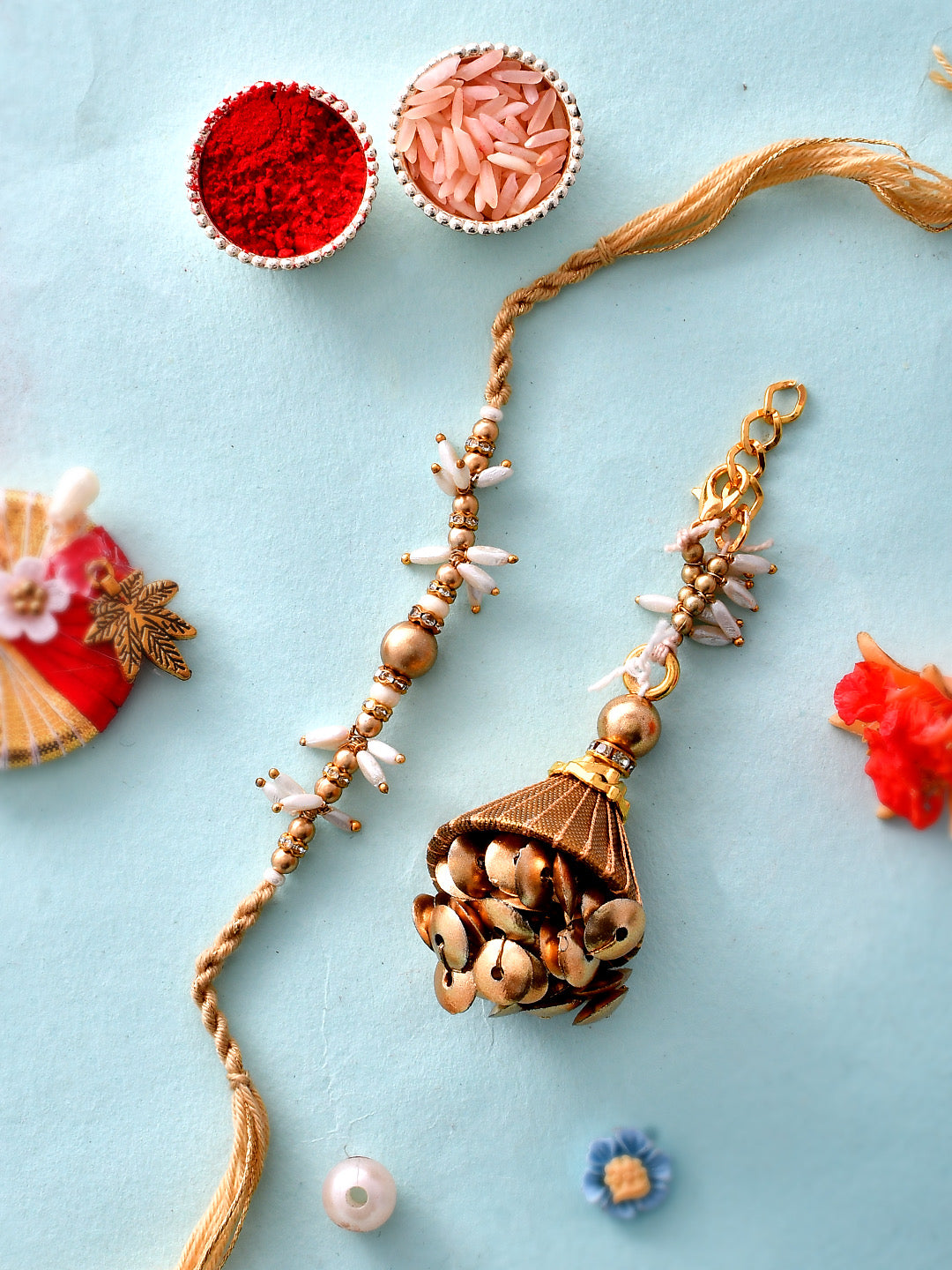 Metallic Brown Unique Crafted Bhaiya Bhabhi Rakhi Set.