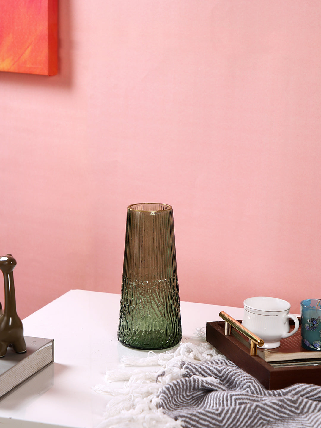 Mosswood Ripple Olive-Green Textured Glass Flower Vase