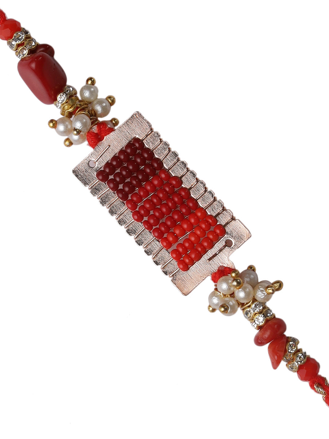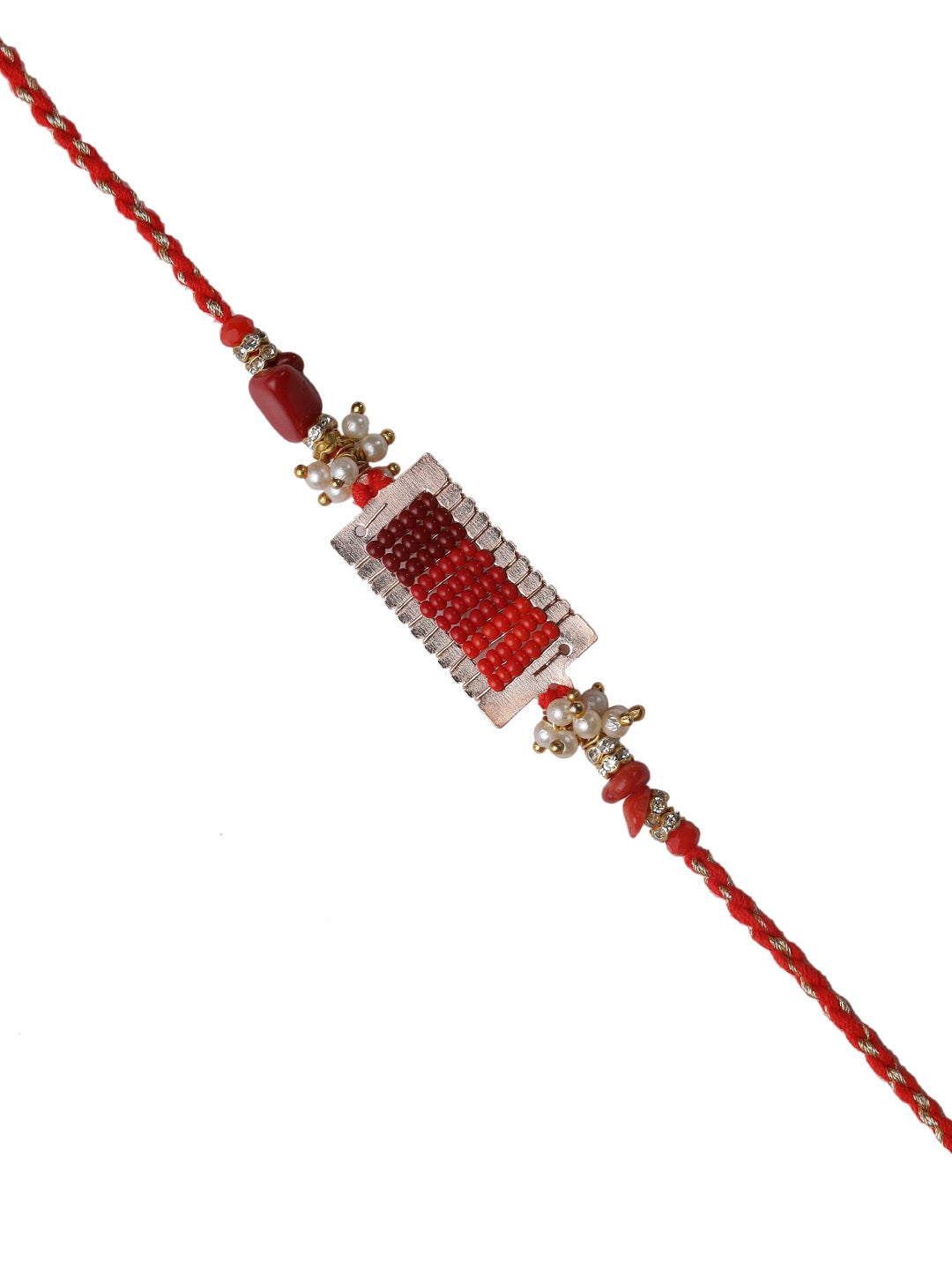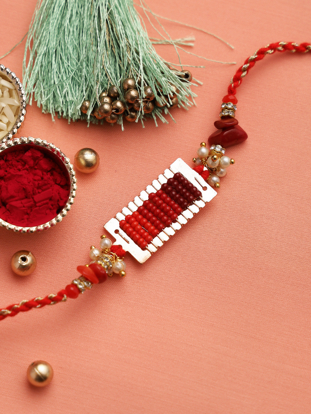 Multicoloured Beads with Uncut Coral Jewelled Rakhi