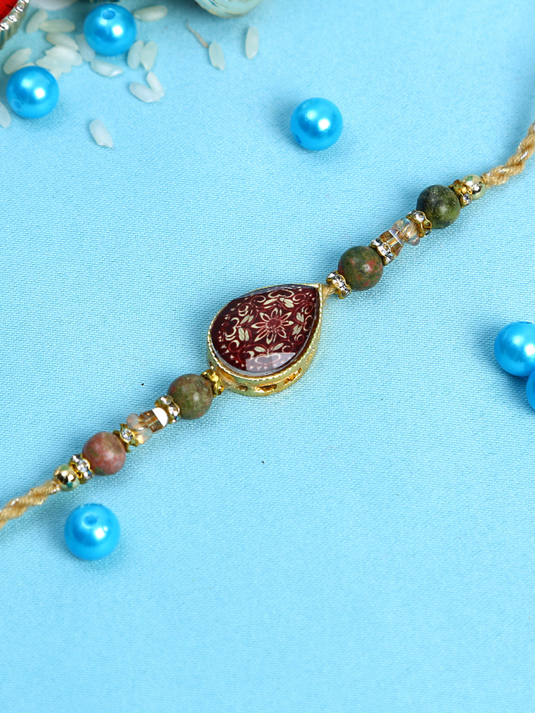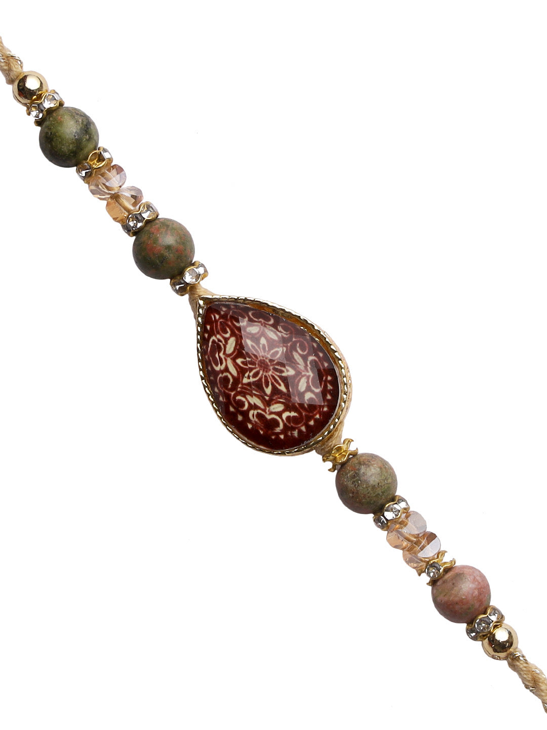 Natural Agate Stone Beads Lucky Charm Rakhi