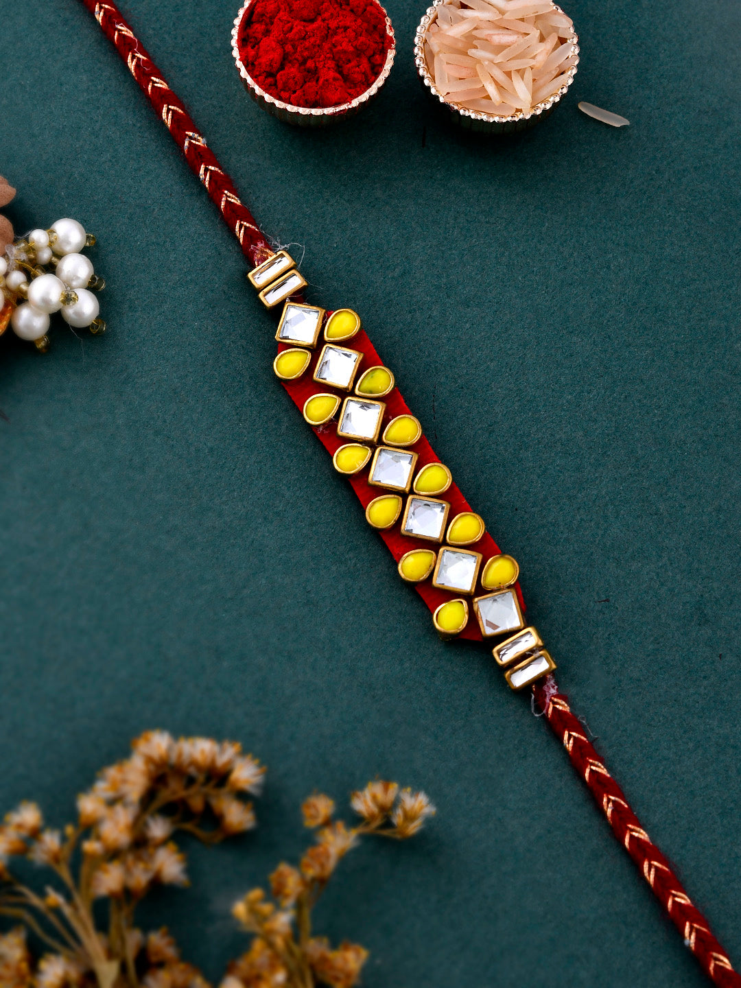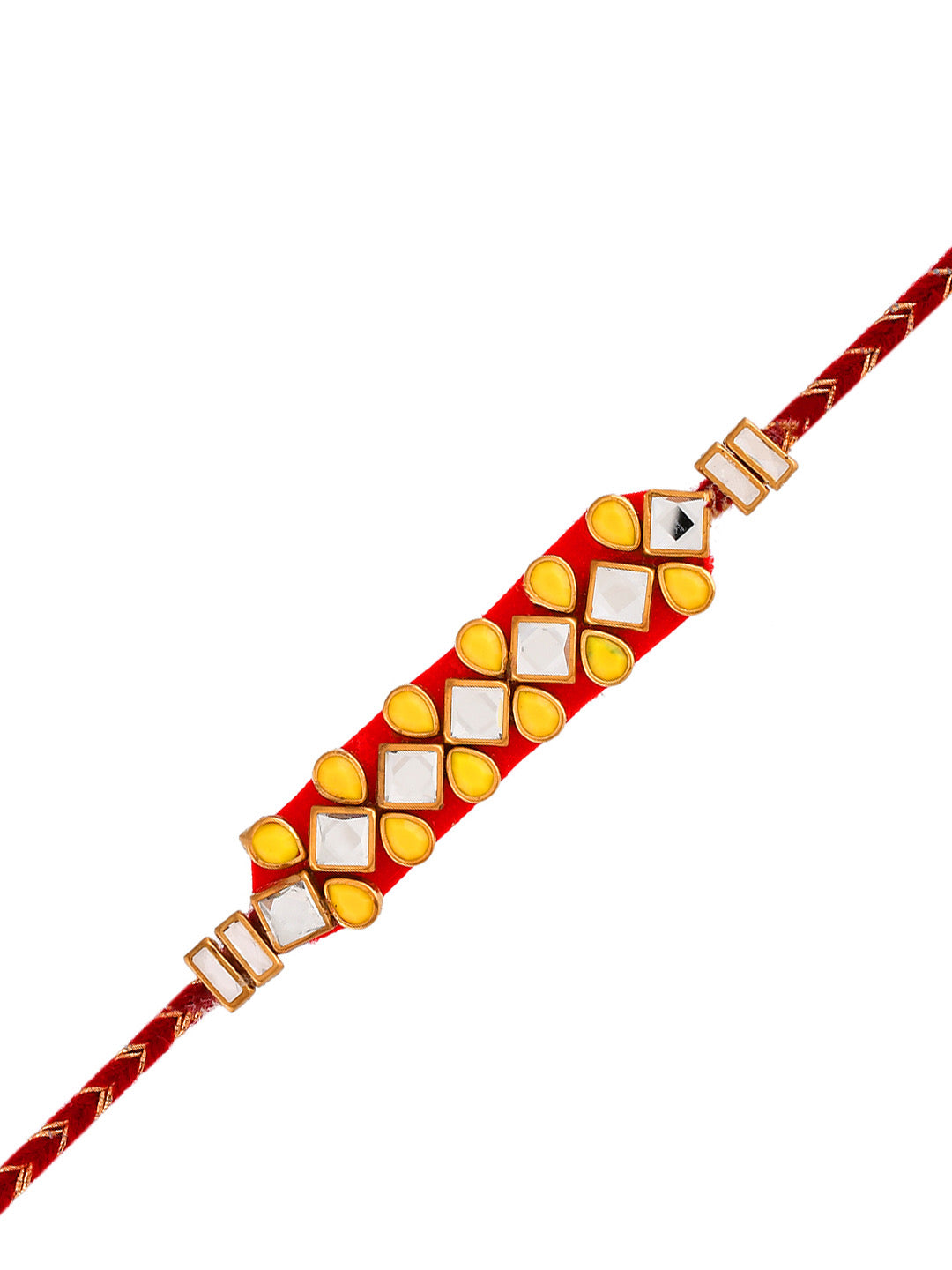 Patterned Kundan Studded Resin Based Elegant Bhaiya Rakhi