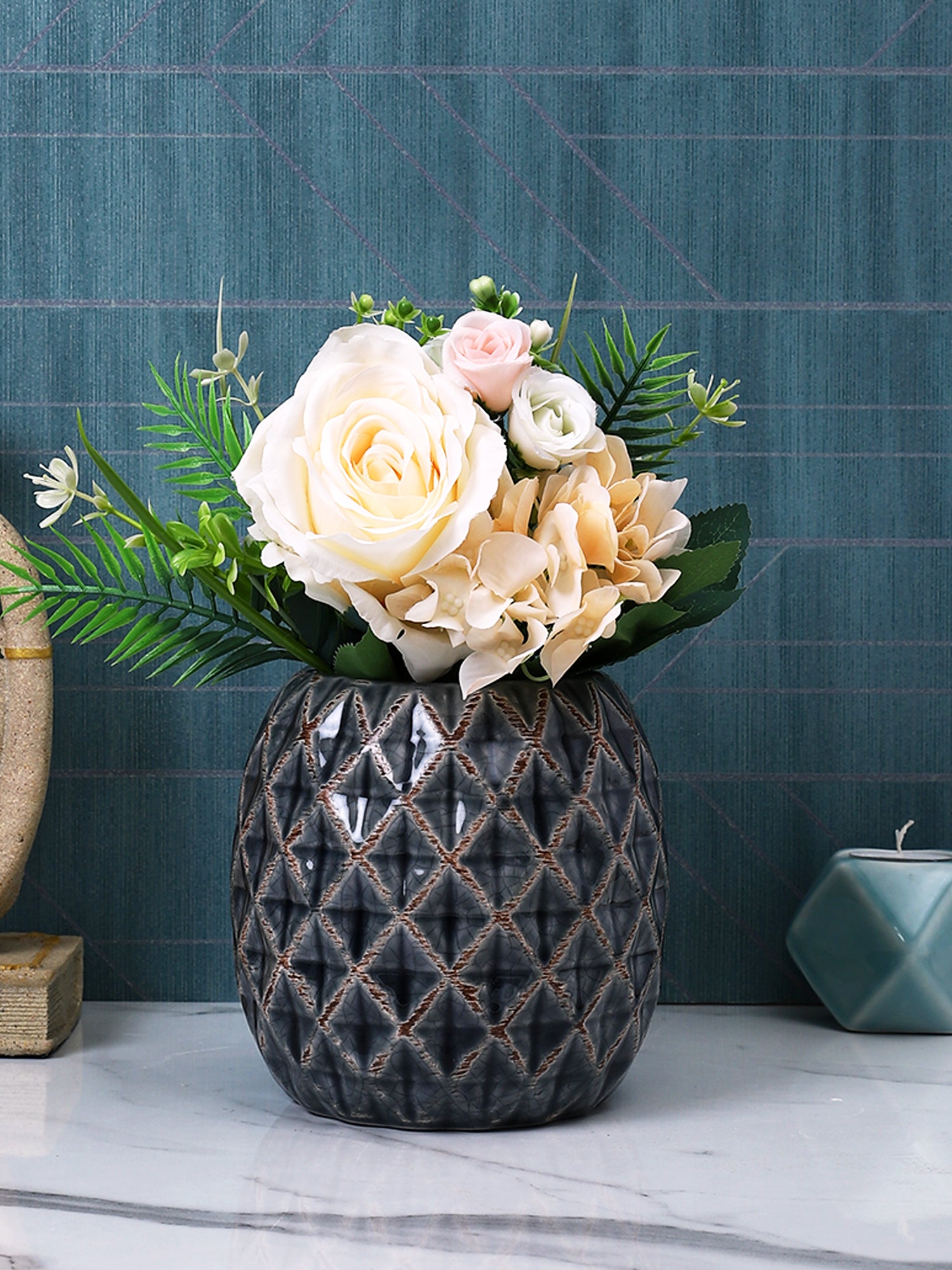 Delicate artificial soft pink roses complemented by vibrant buds and lush greenery, creating a perfect blend of elegance and charm. Ideal for enhancing your decor or gifting to celebrate special moments.