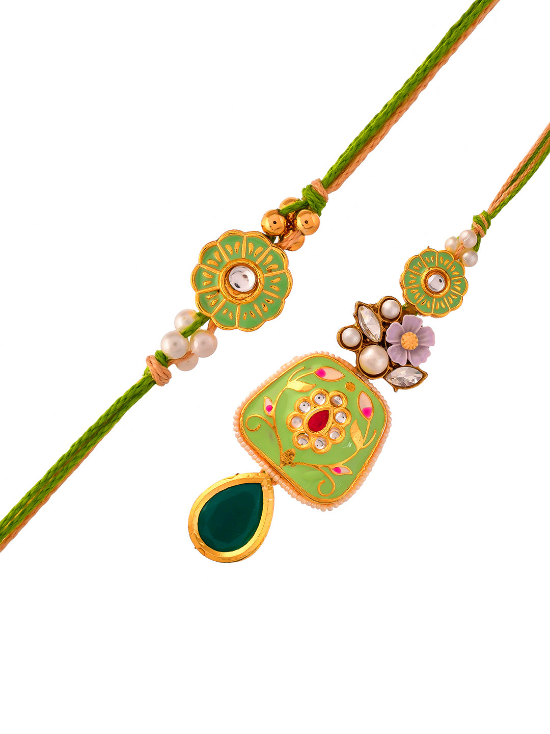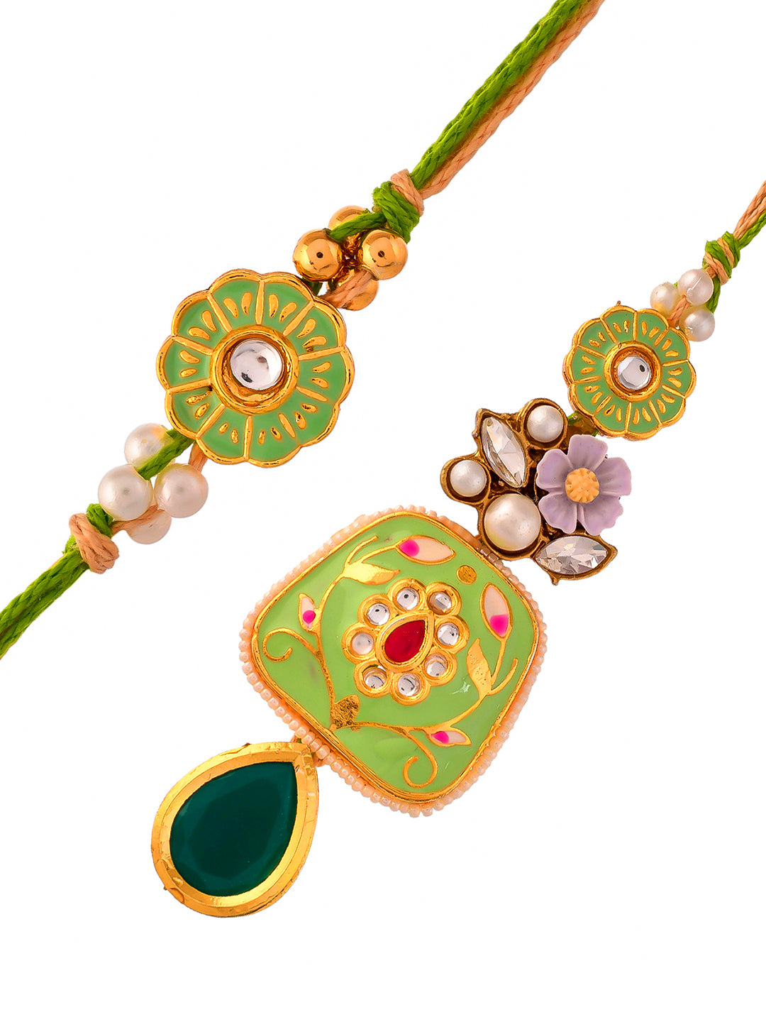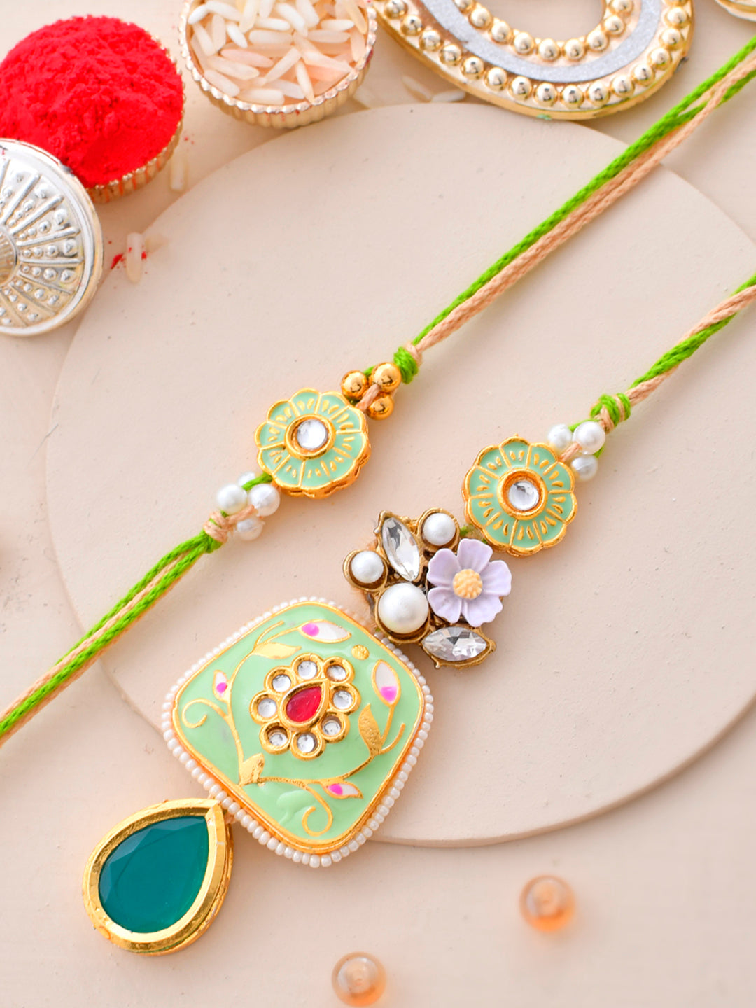 Pista Green Ceramic Enamled & Kundan Crafted Bhaiya Bhabhi Set