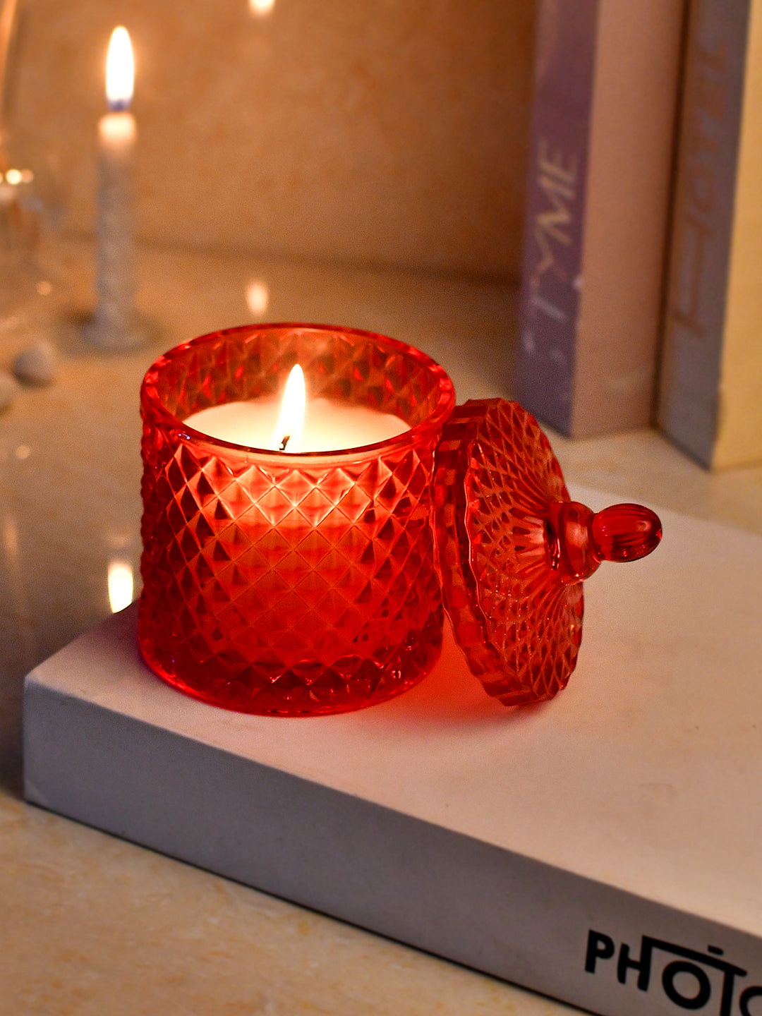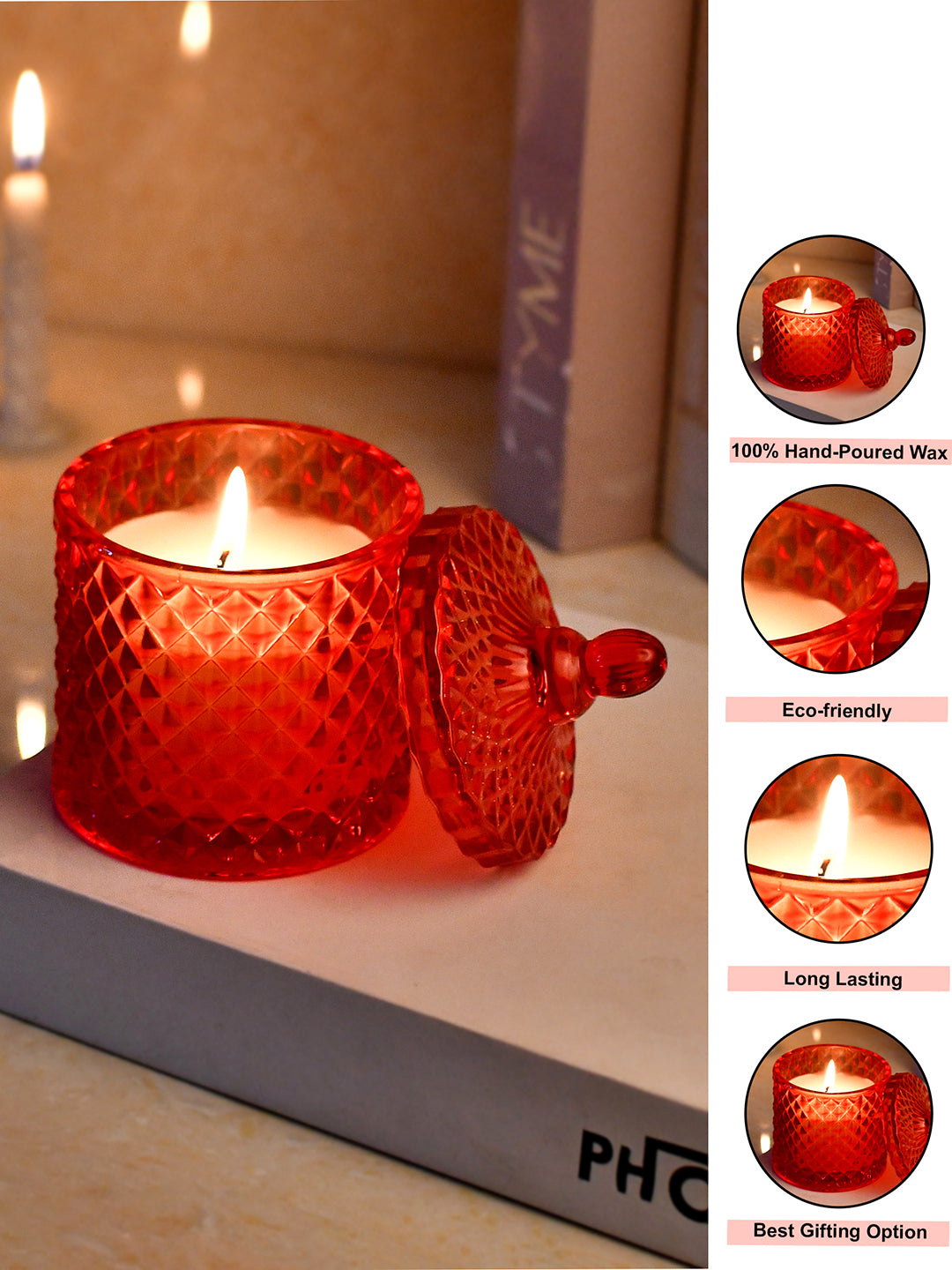 Set Content: 1 Candle Material: Wax Elevate your ambiance with the enchanting glow of our Scented Candle. Housed in a beautiful glass jar adorned with intricate pattern, emphasizing a sense of rhythm, harmony, and color. This candle is more than just a source of fragrant illumination; it's a piece of art that enhances your decor. Care Instruction Wipe with soft dry cloth to remove dust.